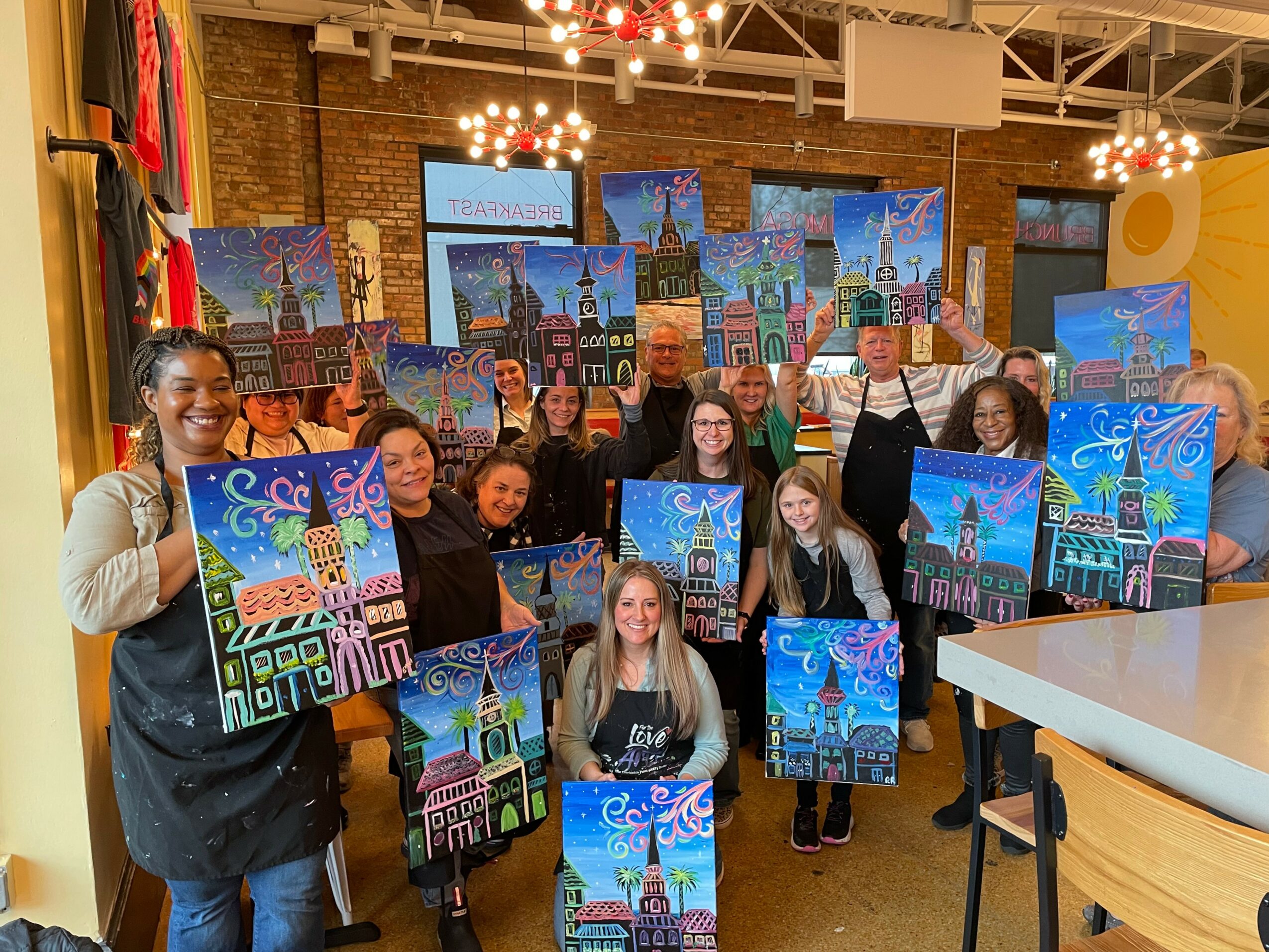 I am a lover of all things art and have been since early childhood. Acrylic painting is especially my favorite medium to work with. Before I became the owner of For the Love of Art, I was one of its loyal customers. I would often enjoy Paint & Sip classes with my family and friends there. In getting to know the owner, I learned that she would soon be retiring and dissolving the business. After some consideration, I proposed that she let me buy it from her and take over. She quickly agreed and I officially took over in early 2019. I started out in the same building she had on Ashley River Road, but during covid my business took a huge hit and I had to step out of the lease as things were very uncertain at the time. During that time I offered free virtual paint events on Facebook Live and had hundreds of people join them from all over the world. When things started to open here in the lowcountry I started being asked to do my events at a few local breweries which then transitioned my business into solely a mobile paint party studio. I take the fun to them, I say. Currently I am doing events at 7 different venues on a monthly basis as well as kids classes and summer camps through the city at Bees Landing Rec Center in West Ashley. I also do private events for individuals, corporations, churches and other groups. I have plans to take my business more “online” as well in the near future, offering camp and homeschool curriculum, a subscription based gallery with video tutorials for other paint event businesses like myself and individuals looking to bring more art into their lives. I just launched a faith based division offering more than just acrylic paintings, but also other faith inspired projects such as prayer bowls, water color greeting cards, painting encouragement stones and more. I love art and I love bringing it to the lowcountry and seeing people enjoy creativity and finding ways to be inspired and bring more joy into their lives through art.