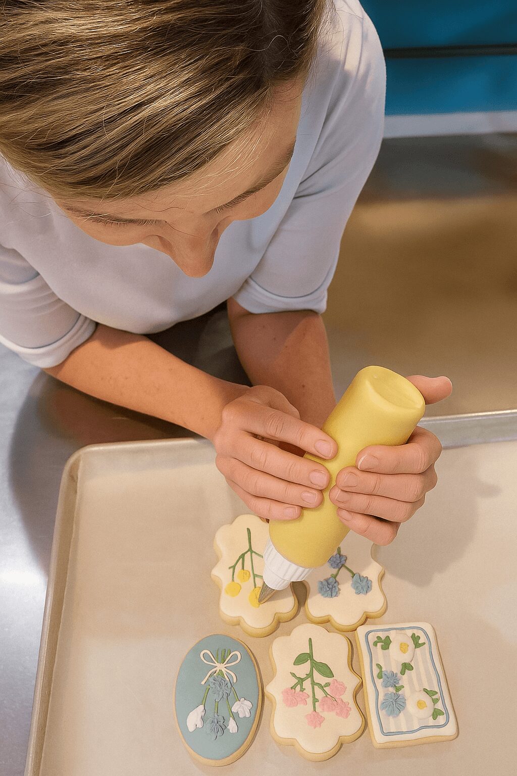 I specialize in a vanilla sugar cookie and use a glaze icing for decorating. When I began, I made all sorts of desserts, flavors and even dog treats, But as time went on I realized there was a niche for my vanilla sugar cookie recipe and it was the most popular. Being that I run everything solely by myself I made the decision to stick with one flavor and perfect it.