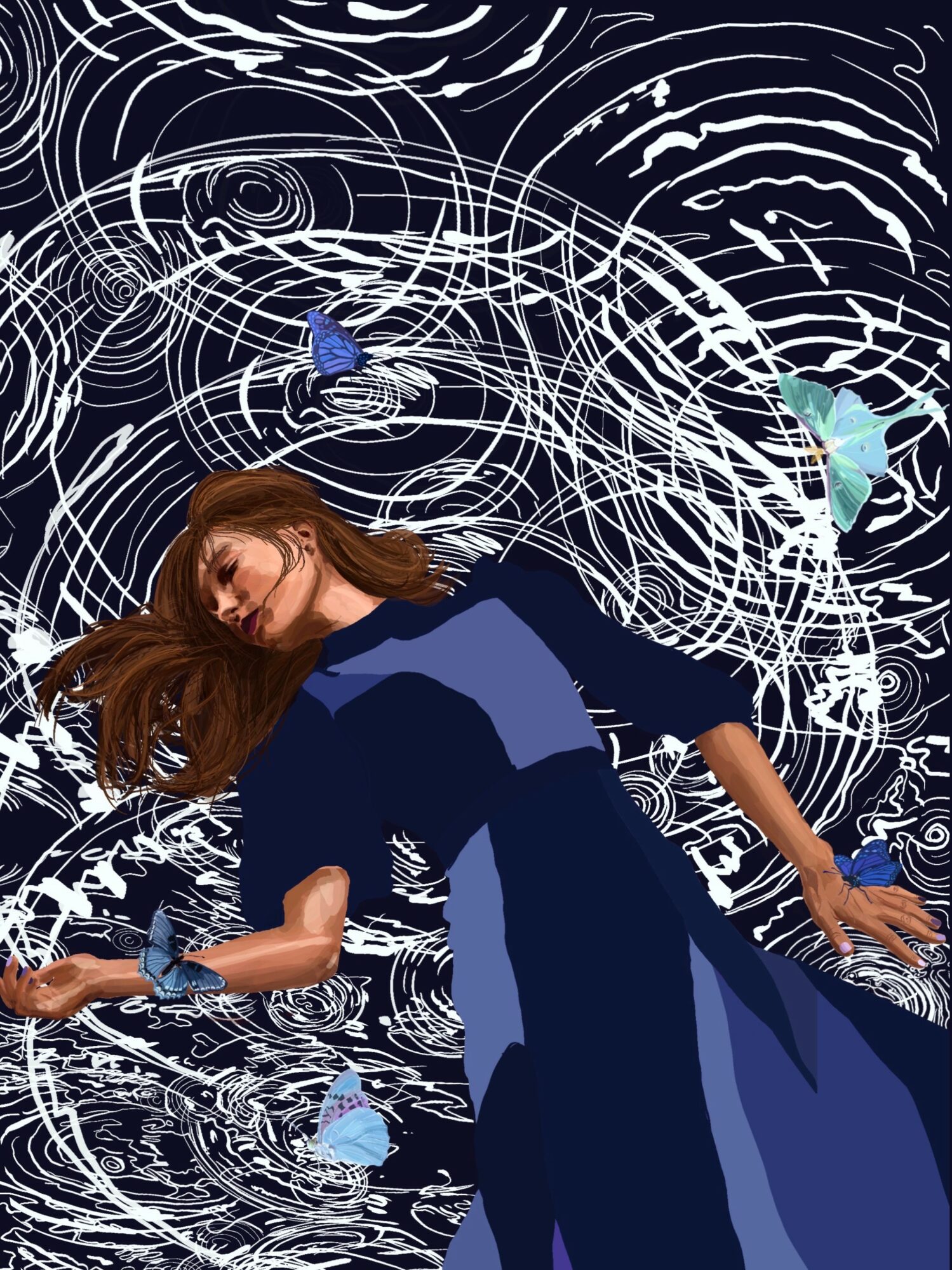 I moved to London the next year and spent two years there teaching while working with musicians on album covers. Most closely with Spiritual Records in Camden with exclusively grass roots artists including Kevin Davy White, Jack Trouble, Dom Glynn, William Poyer, Amy and the Calamites, Ann Liu Cannon, Tommy Hare, and Bandini. It was ideal, I’d go to their gigs, listen to their albums walking around this dream of a city and paint or draw what my mind’s eye was forming from the lyrics and melodies. Covid sent me back to America as I’d lost my visa, but I was determined to continue growing creatively so I landed in Brooklyn.