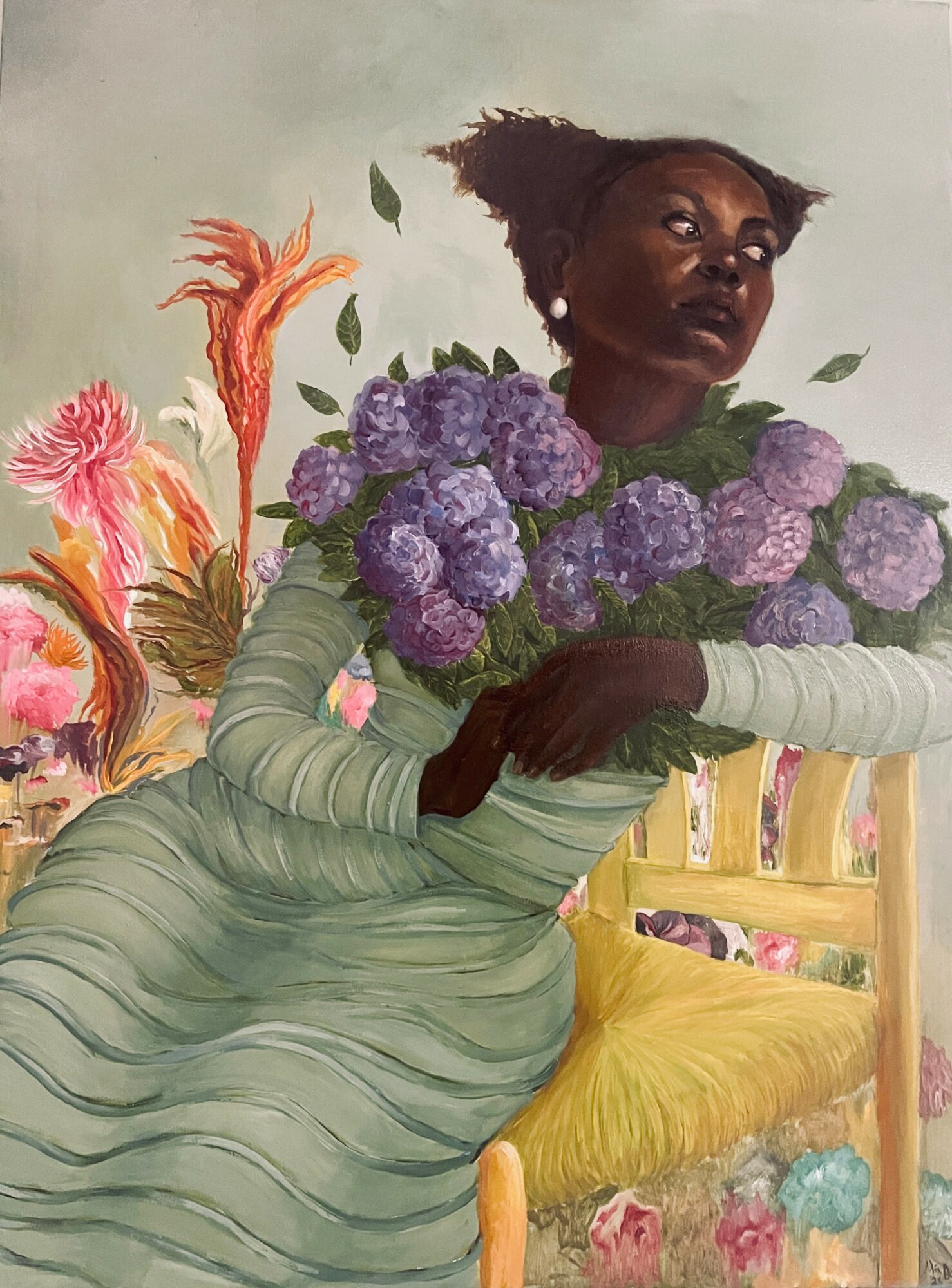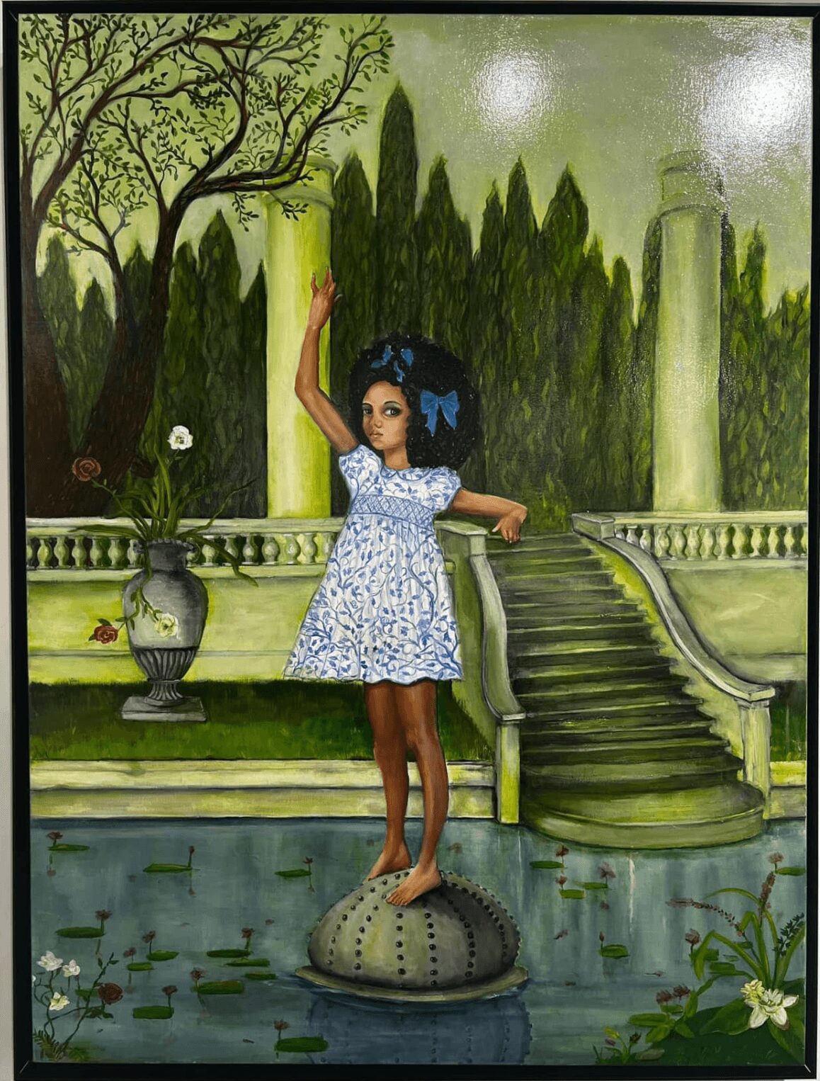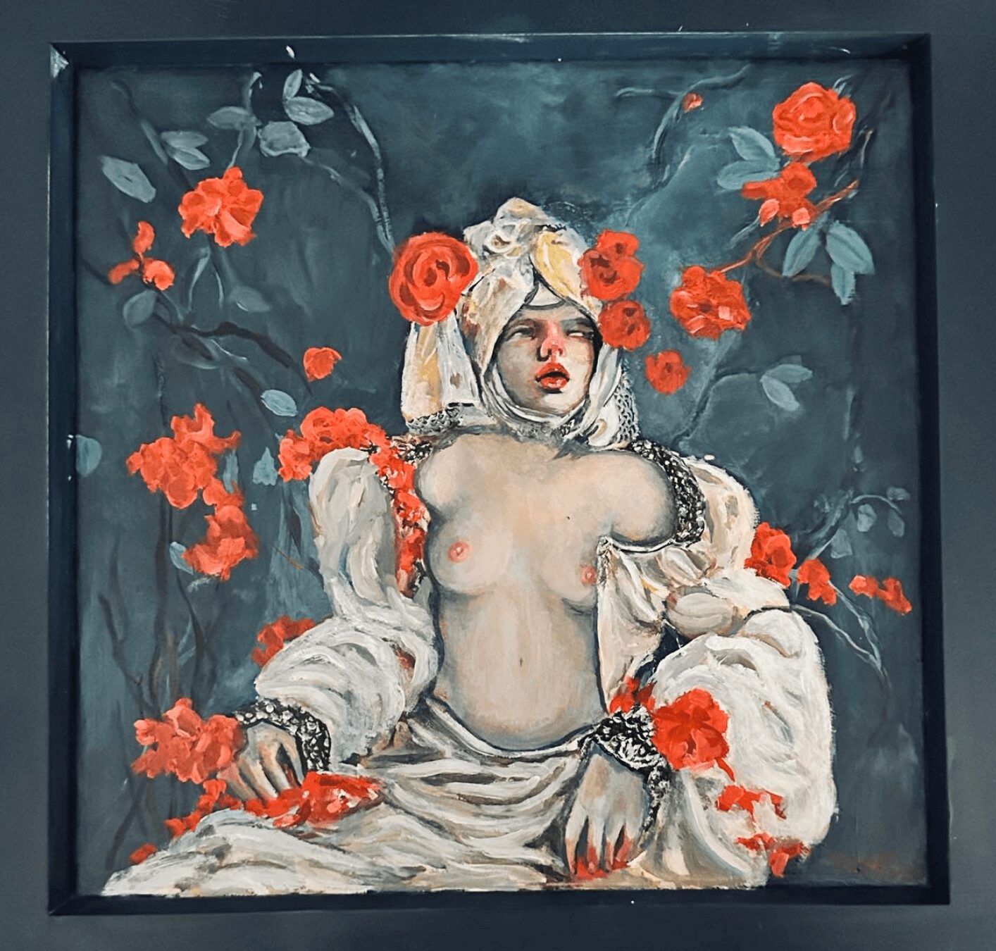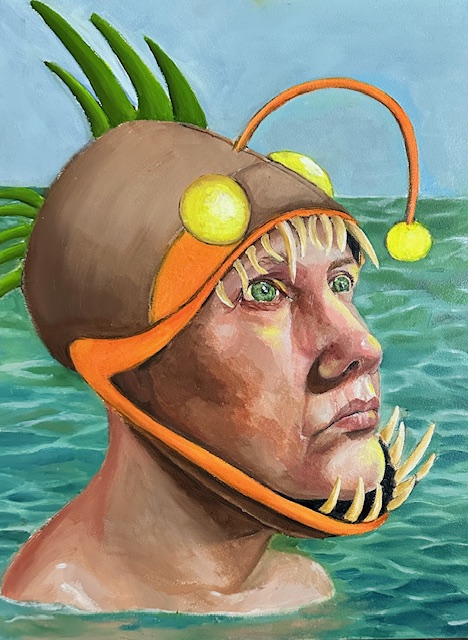 I create oil paintings that explore themes of identity, mythology, nature, and art history. My work intertwines personal and cultural narratives blending symbolic imagery with storytelling. I draw inspiration from historical traditions such as folk tales, female and cultural politics, and legends. I consider myself a contemporary portraitist in the style of expressionistic surrealism. Recently I have introduced sewing into my paintings with the idea of reinvigorating the humble “women’s craft” and raising it to a higher level of art.