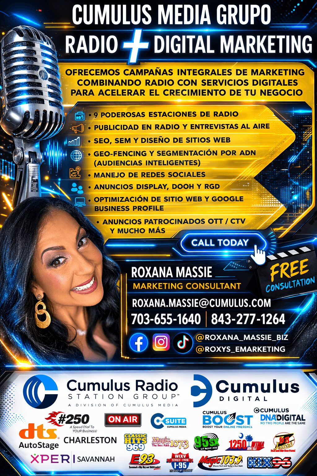Professionally, I work in Cumulus media Radio & Digital Group to promote our marketing services, helping businesses use the power of Radio + Digital integrated strategies to generate real results.