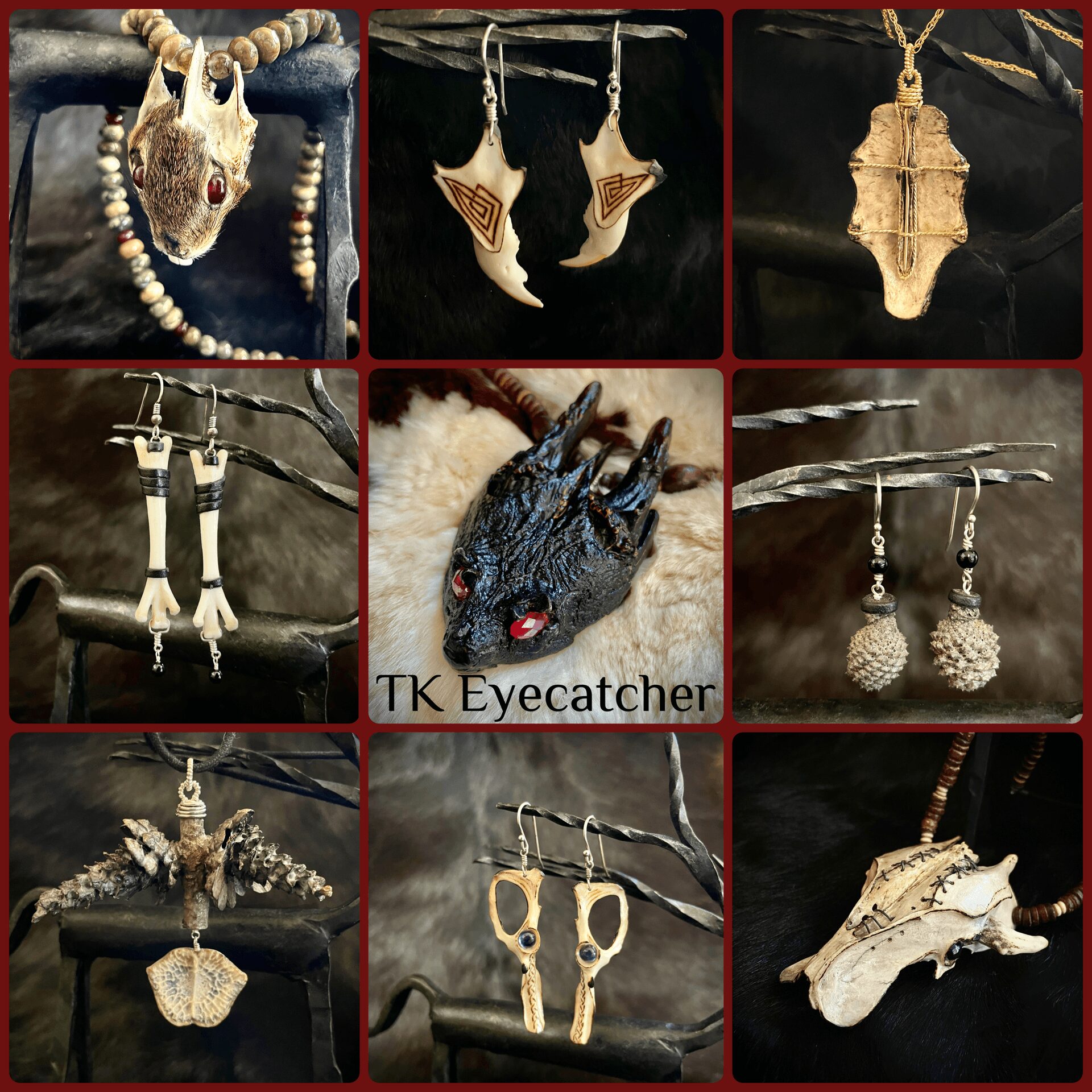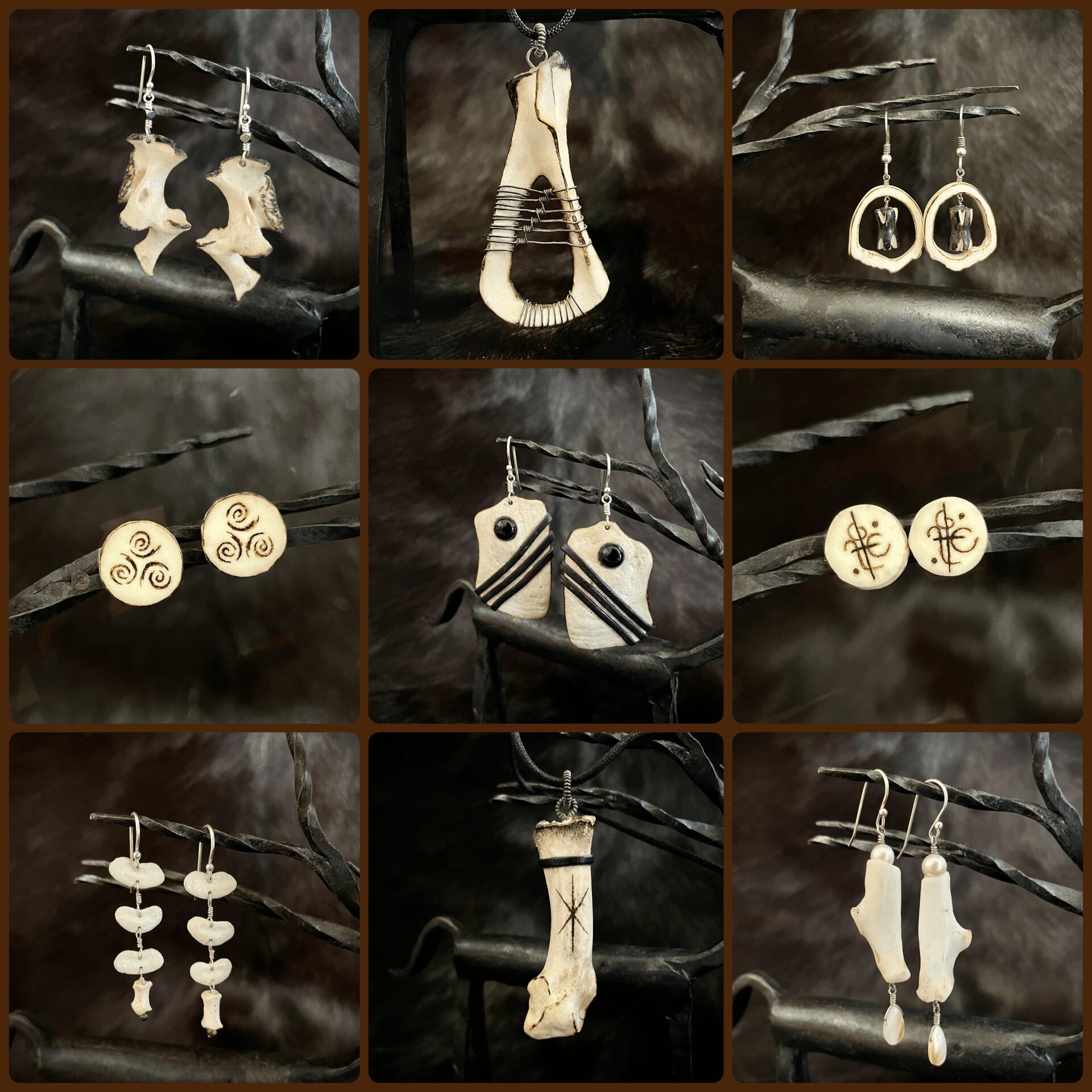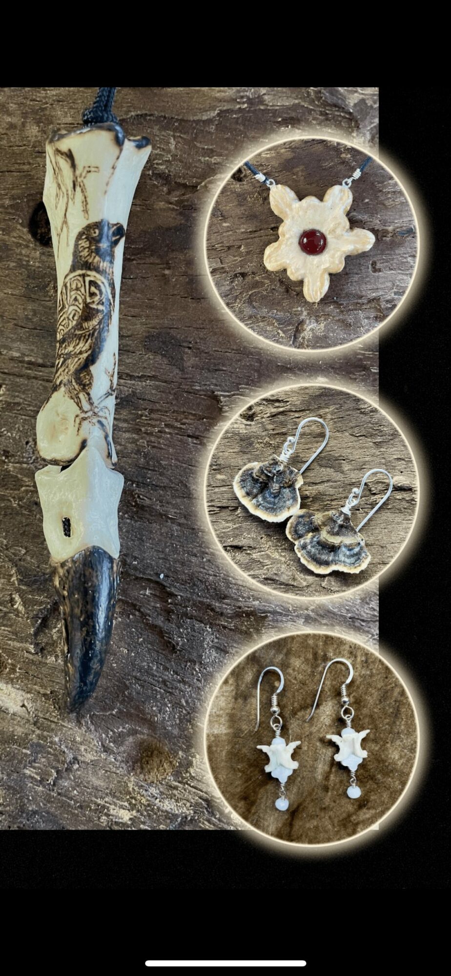 I started to work with broken shells and natural products. How I came up with bones I don’t know. …Yes… bones! I fell in love with that. I love to honor the animals that died naturally or most often accidentally.