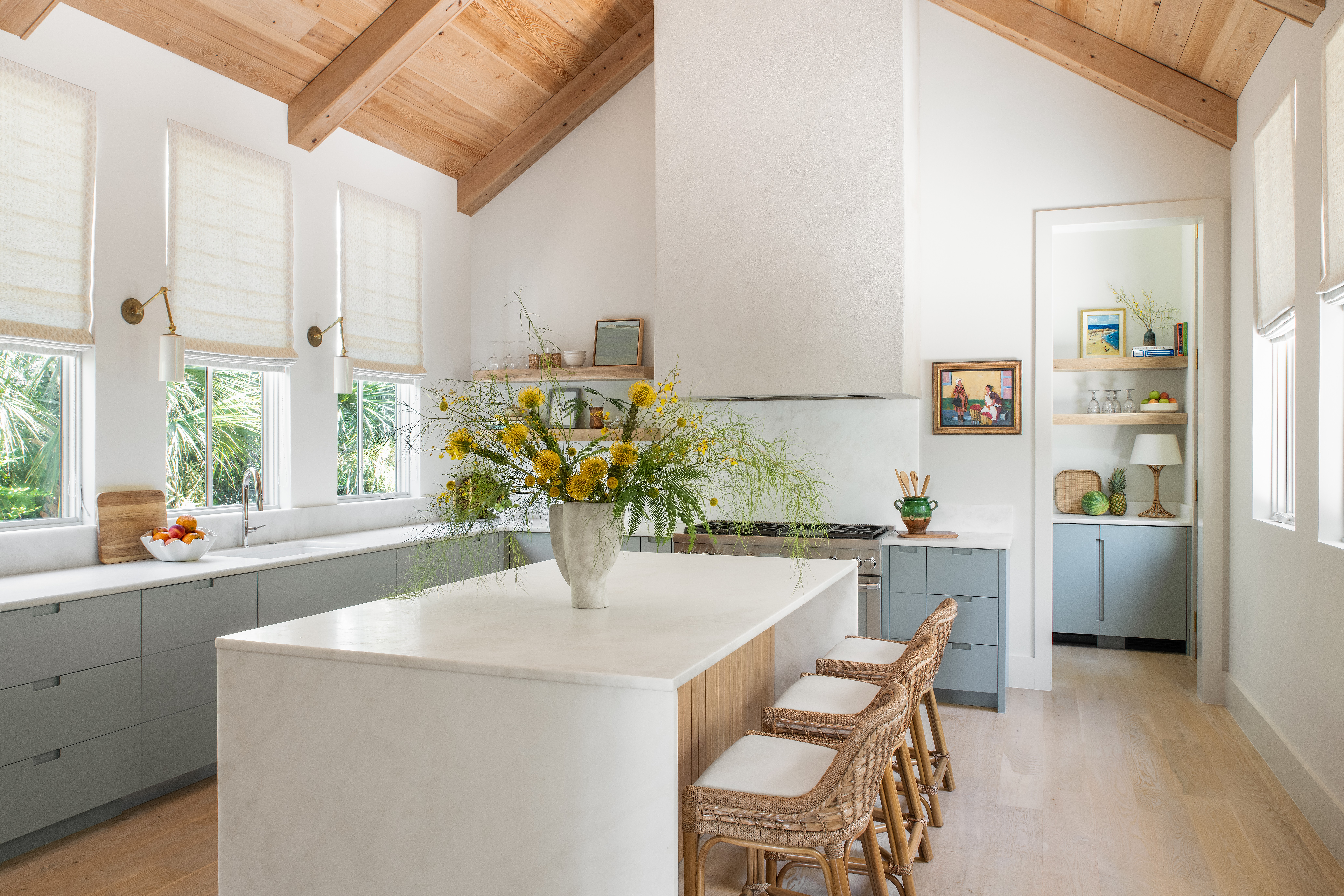 In the south, especially in Charleston, we are designing houses that are more classic, timeless, and designed with a nod to local architecture and materials. We see more natural stone vs. synthetic materials like marble and soapstone for countertops. The open-concept floor plan is also less popular now. We love a formal dining room in the south to show off our adorned tablescapes, and heirloom place settings. This area allows you to be bold with a moody color or just a beautiful delicate floral wallpaper with painted trim that brings out the color in the wallpaper. You can also showcase family memories here, whether it’s an antique heirloom chest, your grandmother’s table, or a vintage buffet. It’s a great place to mix old with new. Lastly, we are seeing more of an eclectic design style of old and new and mixing different textures, patterns, and colors and curating a space of items collected over time vs. everything matching and buying furniture all at once.