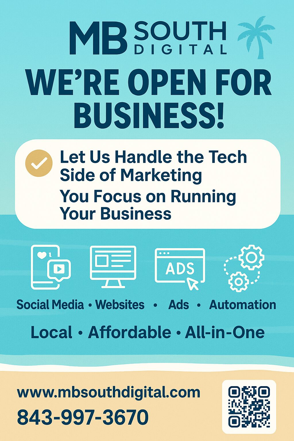 If there’s one thing I want readers to know, it’s that you don’t have to be a big company to have a big online presence. Whether you’re just starting out or looking to take your business to the next level, we’re here to make that journey easier and more affordable — right here in the heart of Myrtle Beach.