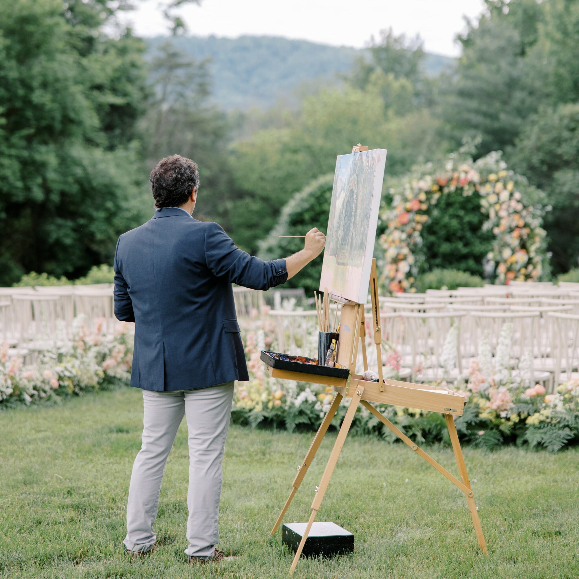 The biggest struggle was that when we launched the live wedding painting side of the business, there were only a handful of artists in the country doing the same thing. To our knowledge, our website was the first stand-alone website dedicated to live wedding paintings, and we didn’t even know what to call it or how to create a website to explain it. We literally created everything along the way. From figuring out how to pass through TSA with a mini-studio to navigating the elements of various climates across the country … we didn’t have the luxury of googling how-tos! The learning curve of Ben painting outdoors, in imperfect environments … was a wild journey! From the cold, dry air in Colorado, causing paint to harden and dry quickly to our extremely hot and humid lowcountry air in Charleston, where the paint is so slow to dry at times in high humidity, and quick to dry other times under hot sunlight … managing the variety of weather conditions was one of the many big learning curves during the first few years.