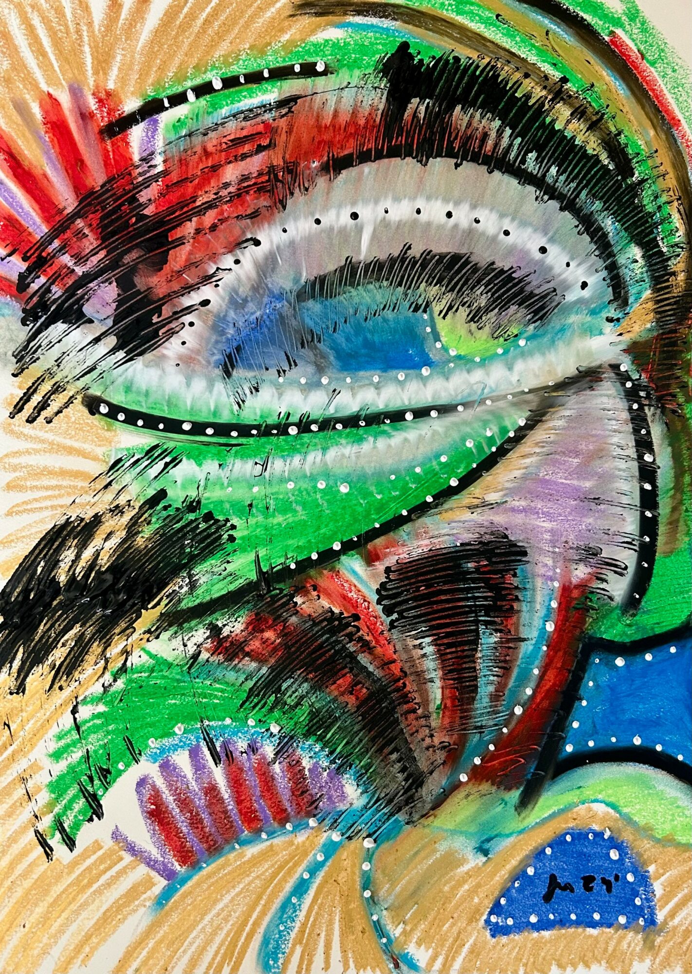 My (art) work is introspective, and things get regurgitated once they have been marinating in me. This could be a happening, a place, a person or thing that I experience. This isn’t very different than a lot of abstract expressionists, but none of them are Honduran. I was born there, and lived there till the age of ten. And then I had the good fortune of experiencing America for the past 38 years, and am now very Americanized. So this mixture shows in my work, with very expressive colors and memories or subject matter which hint at my mestizo background. Sometimes I work with a subject and sometimes I just let my mind go blank and let my body’s memory take over….
