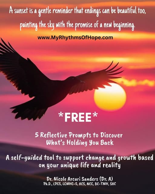I also founded Rhythms of Hope, LLC, an initiative centered on expanding access to mental health education and wellness resources. The concept first began while I was living along the coast of North Carolina, where the rhythms of the ocean became a powerful metaphor for the cycles people experience in their lives. Now living and working along the South Carolina coast, that connection feels even more meaningful as I continue working with students, clients, and communities navigating their own seasons of change and growth.