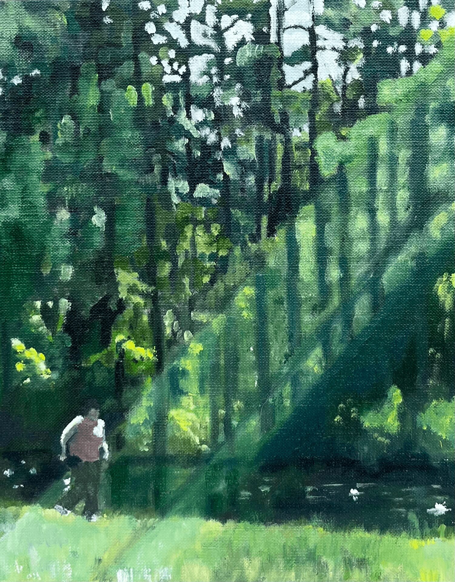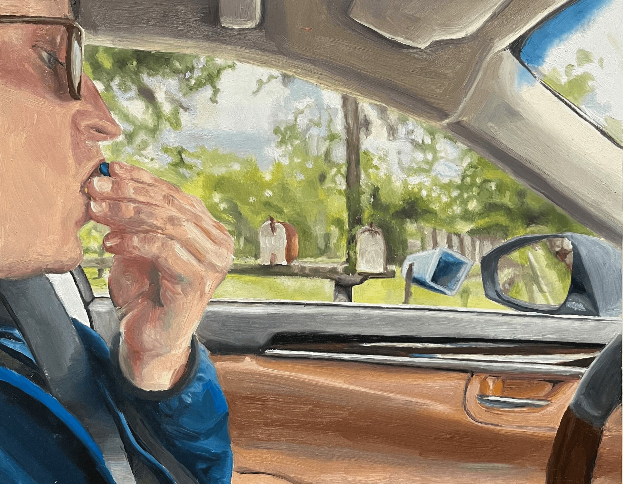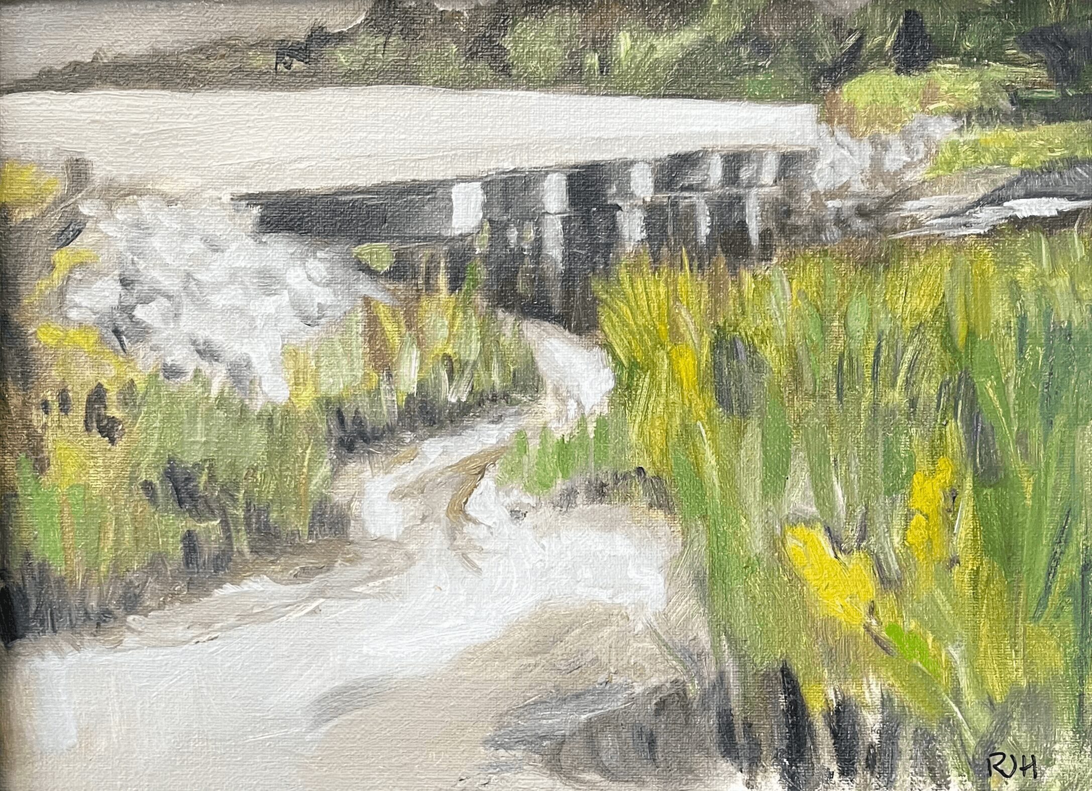 My work is concerned with how we use urban, suburban and rural spaces, especially with regard to how we move from place to place. I am interested in perception and how it is impacted by technology as well as our own preconceived ideas. I began my studio practice with watercolor but have launched into oil painting.