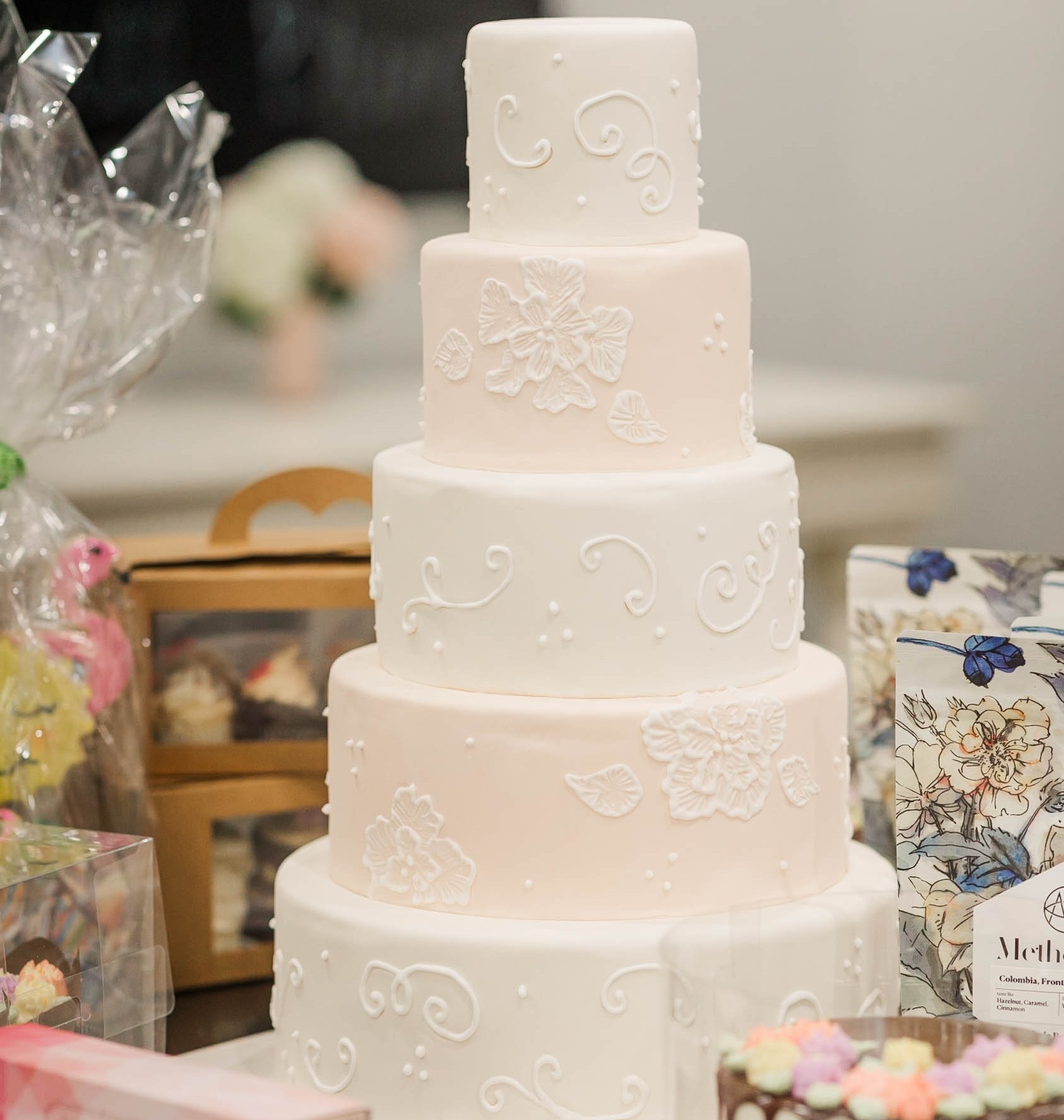My cake journey started when I took my first bakery job in college. I immediately fell in love with the kitchen’s pace and seeing the smiles on our customer’s faces. I would always sneak a peek at the cake decorators’ design but have yet to dare to try it myself. It wasn’t until years later that I decided to make a friend a birthday cake. I went to the store armed with a recipe to buy my ingredients, fondant, flower cookie cutters, and a step-by-step decorating guide. Unknowingly I choose an ambitious design for a beginner. It had handmade flowers, quilted fondant, and pearls, but I nailed it! From there, I began to design and make cakes for all my friend’s birthdays, babies, and bridal showers. Over several years I honed my skills and began to decorate professionally.