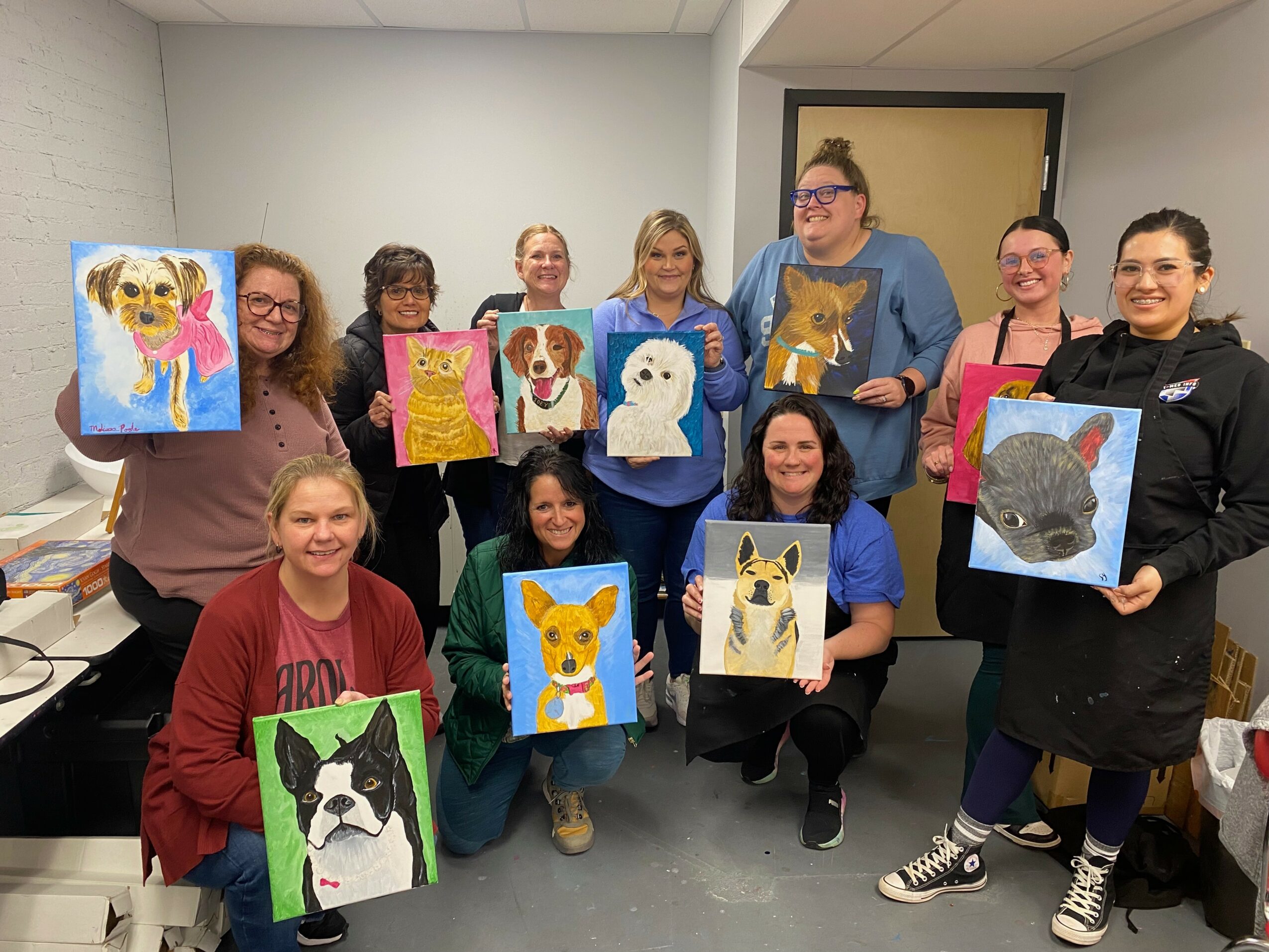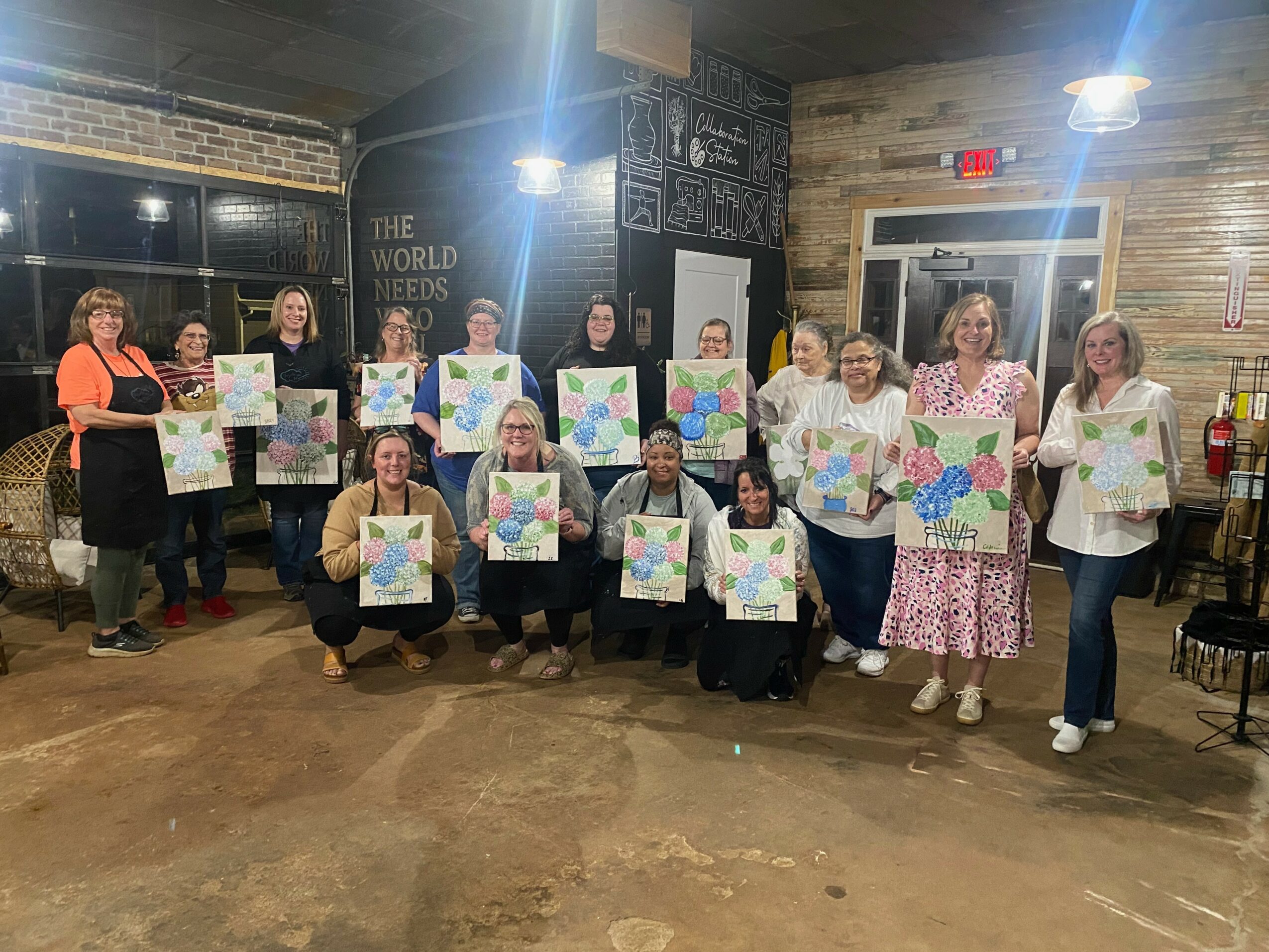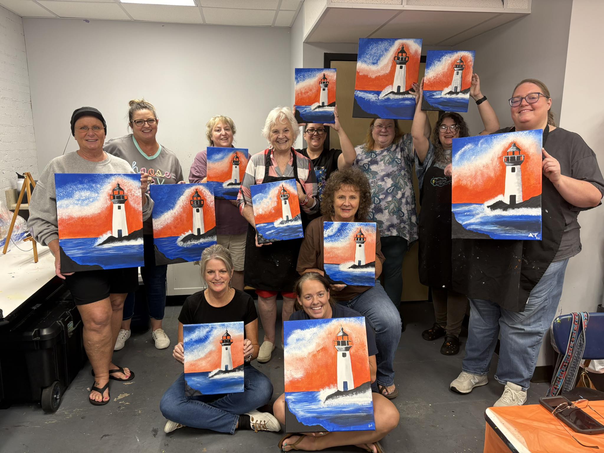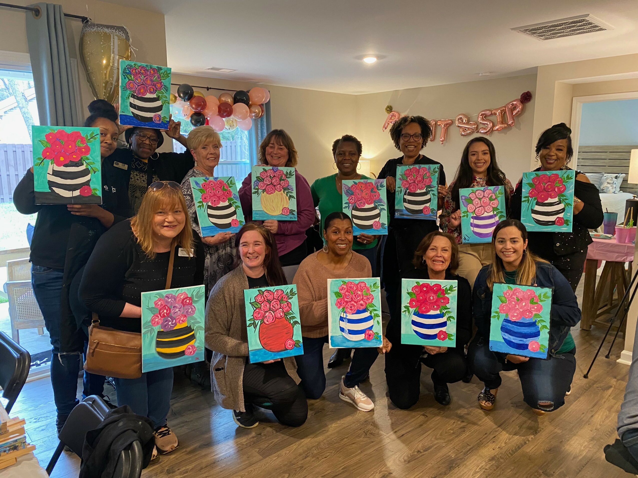 Years ago, I heard about the paint and wine industry and realized that would be the perfect opportunity for me to share my love of art with others. This was something I could do part-time outside of my full-time position. I started hosting paint parties with friends and family then obtained my business license so that I could teach mobile paint parties at the arts center as well as homes, restaurants and businesses.