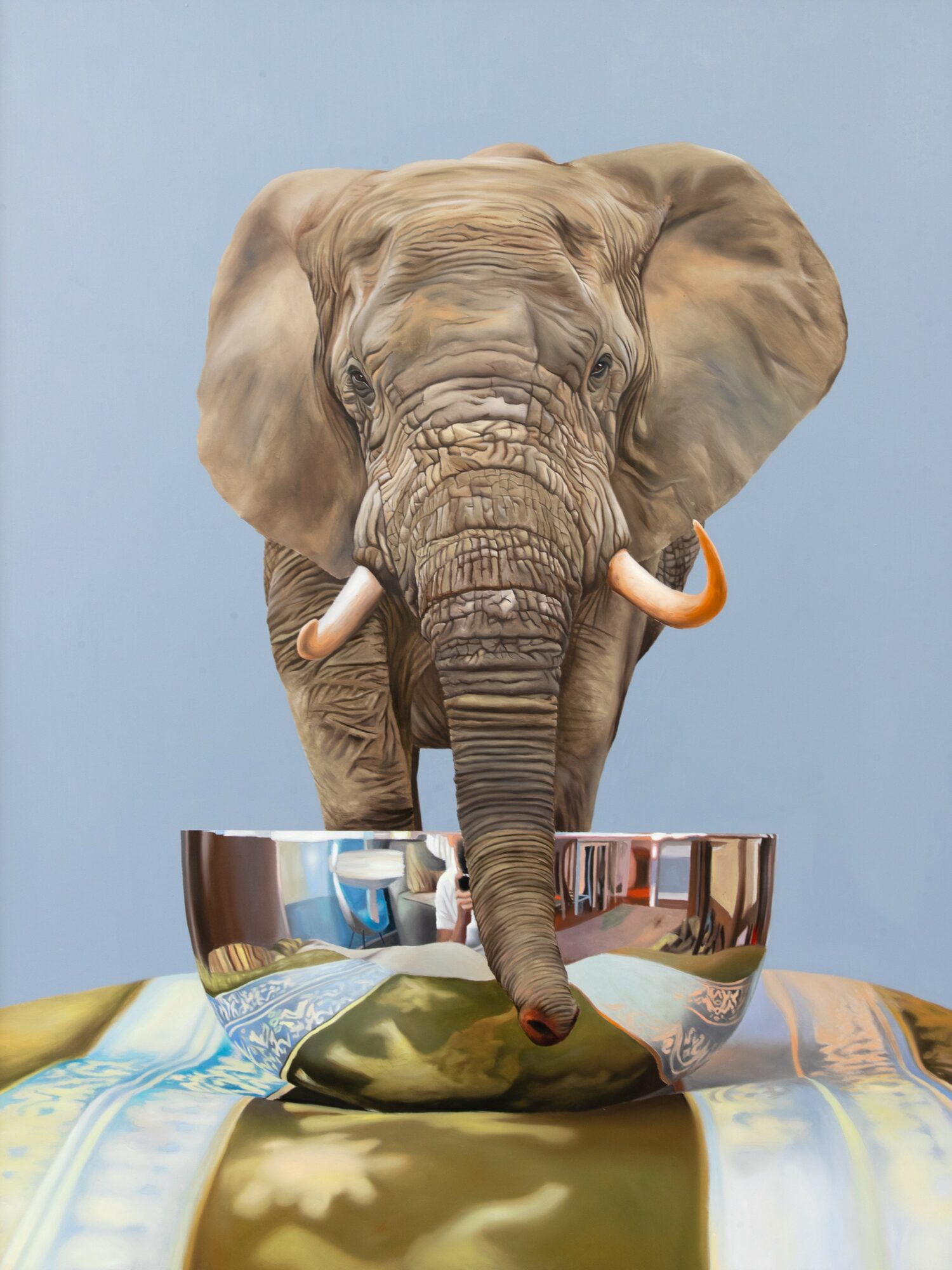 I’m a painter, and my work has always centered around realism with a bit of a whimsical or surreal twist. I love exploring the space where technical precision meets imagination—where a painting can be both grounded and dreamlike at the same time. I’m probably best known for pieces that feature unexpected elements in otherwise realistic settings—things that make you pause, smile, or ask a question.