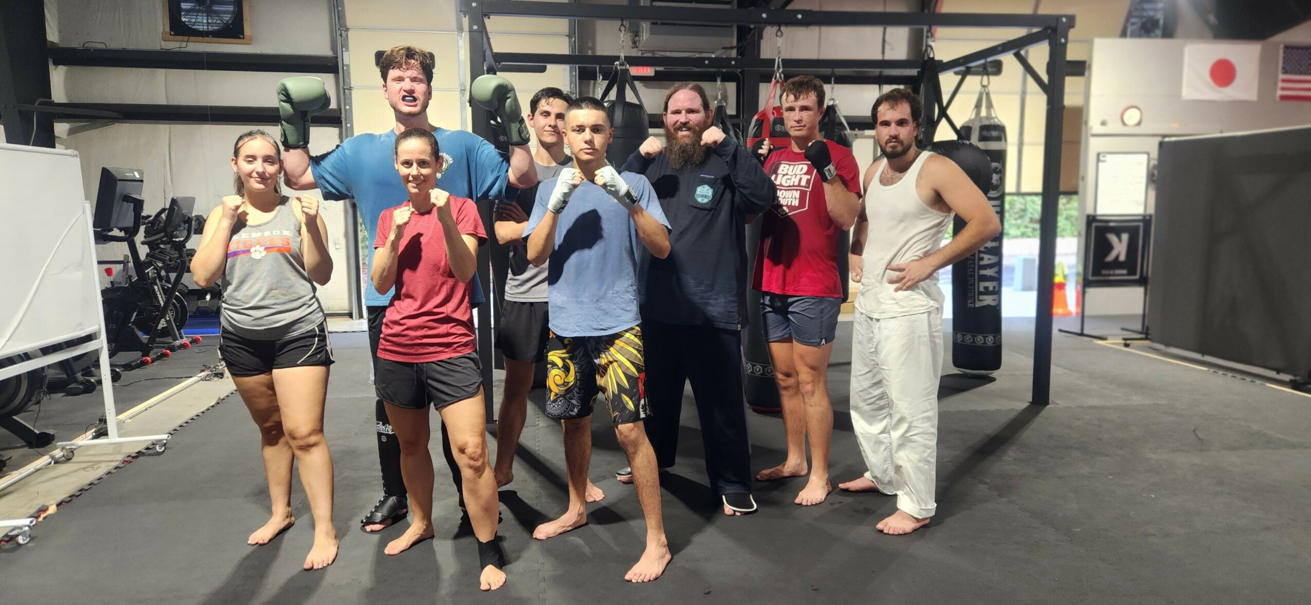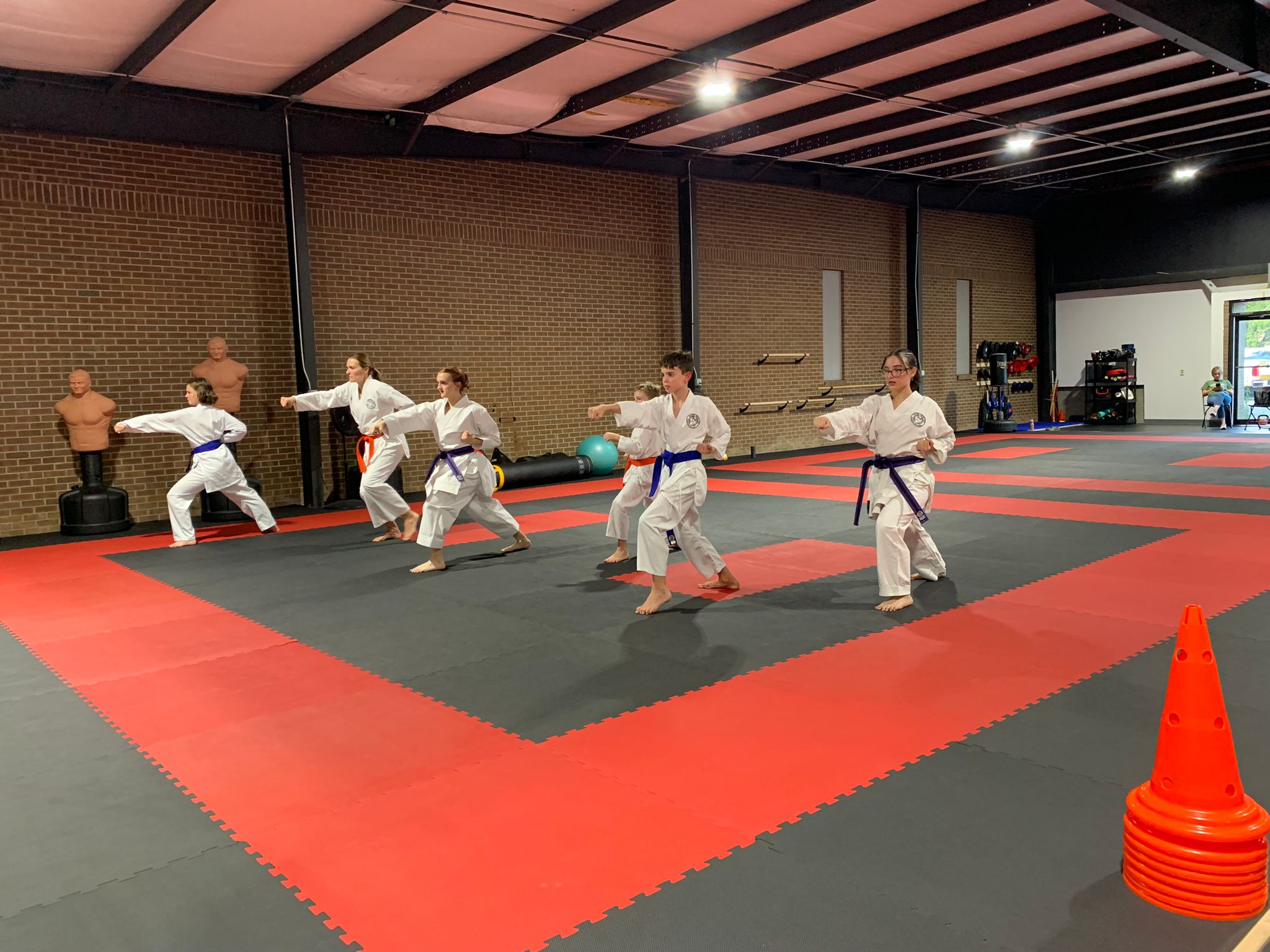 We have a great martial arts gym, working expansively in martial arts like karate, kickboxing and jiu jitsu principles in our curriculum. We have a heavy bag section, fitness classes and a mini gym with weights, and all the equipment needed to get in great shape or become a super athlete.