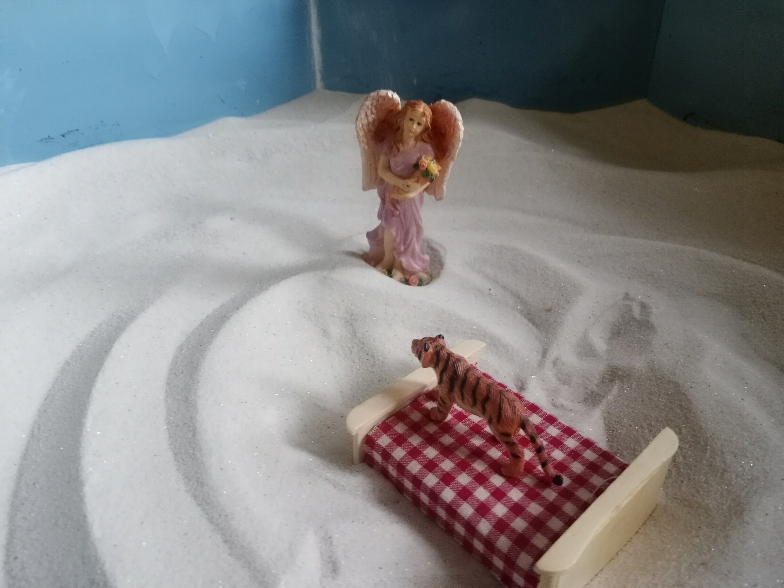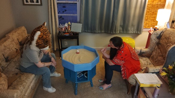 We offer psychotherapy sessions for individuals, kids, teens, and couples. I’m proud to announce that we just added limited group therapy here on site for special populations (womens’ issues, grief, narcissistic abuse, etc). I wanted to offer something different to potential therapy seekers by having a loud and vibrant color scheme and an actual logo, so I took the typical pastel therapy office zen green and turned it up to chartreuse and added a deep purple vs the standard therapy office lavender. Many therapy offices use pastel colors to indicate calm and serene, we are vivid to indicate exertion and joy. Expect your healing journey to be brighter and more defined. With Marbles as an obvious mascot, choosing a name was easy! But since cat counseling sounds impossible, I chose a tiger; I had heard tale that people in the Clemson area have quite the affinity for this large mammal. If you were born in the chinese zodiac year of the tiger such as myself, you might already know this beloved animal is a modern and ancient symbol of courage, strength, and independence. I’d say the most distinct thing that sets Tiger Counseling apart from other therapy practices is that it’s not emphasizing a “safe space” and tigers are not commonly associated with safety or serenity. Those are wonderful, but they are on the other side of the rainbow, on this side we are doing a lot of challenging limiting or unhelpful beliefs or actions or thoughts. There is no growth without risk, and it seems like most modern therapists don’t emphasize how challenging good psychotherapy can be. We expect that going to the gym is hard, but we hope for almost guaranteed results with consistency. Well unfortunately the reality is that going to counseling is different, nothing is guaranteed, you have to do almost all of the work outside of session. As a therapy client myself, I didn’t need a safe space, I needed a non-intimidating person to listen to me in a ,hopefully, inspiring and creative space so that I could rise to the occasion of my own life by acquiring new information or skills or insights, ie I needed a gentle kick in the behind with someone who seemed warm and competent. I tried to create the space that I would have wanted on my first day of being a therapy client myself. Clients often say they feel the vibe is laid back and comfortable, I’d call it shabby chic (I rehab a lot of thrift furniture). We might kick off our shoes on a nice afternoon and sit outside under the pines with the birds as our background music, feasting our eyes on my vast collection of red canna lily gardens , letting butterflies and hummingbirds in on our session. Or we might spend the session utilizing the vast miniature collection in the sand tray. My days as a Montessori preschool assistant taught me to always follow the child, adapted to the therapy venue it’s always the client’s choice how we approach that day’s session, as the home setting gives us so much flexibility in a cozy atmosphere that couldn’t feel less like a sterile doctor’s office setting. I’ll never forget the day a lady showed up with horse in tow…asking if I minded if she left her horse outside during our session. I glanced back at my doorway and replied ‘Well I don’t think he’ll fit, so yeah, I guess just leave him out there!’