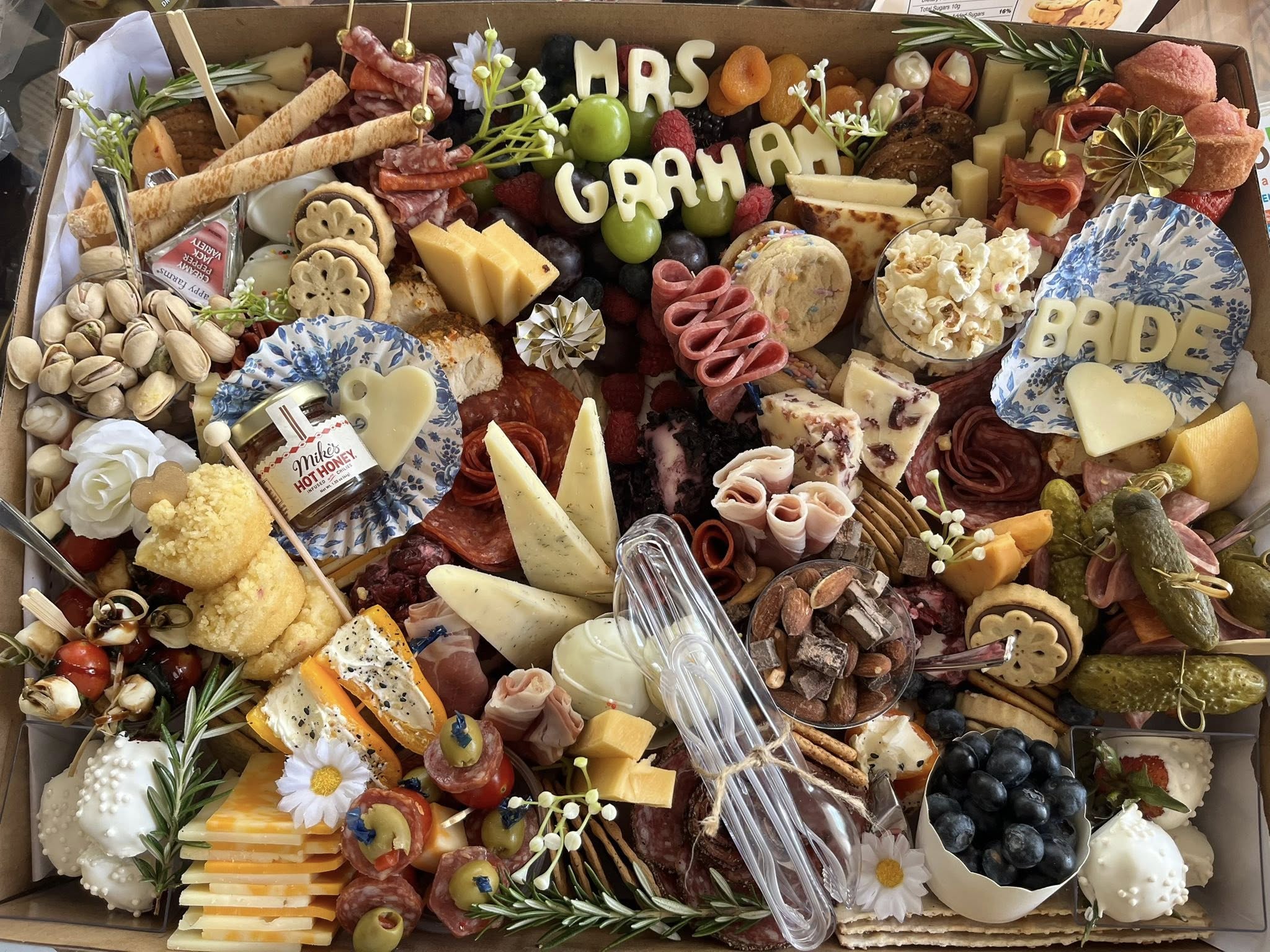 For anyone who’s just discovering us: we offer the mobile charcuterie cart, custom charcuterie boards, boxes, and event grazing setup and we are always open to creative ideas. We’re here to help you celebrate the little moments and the big milestones with something custom, creative, and delicious. Most importantly, we love connecting with our customers to create something that feels just right for them.