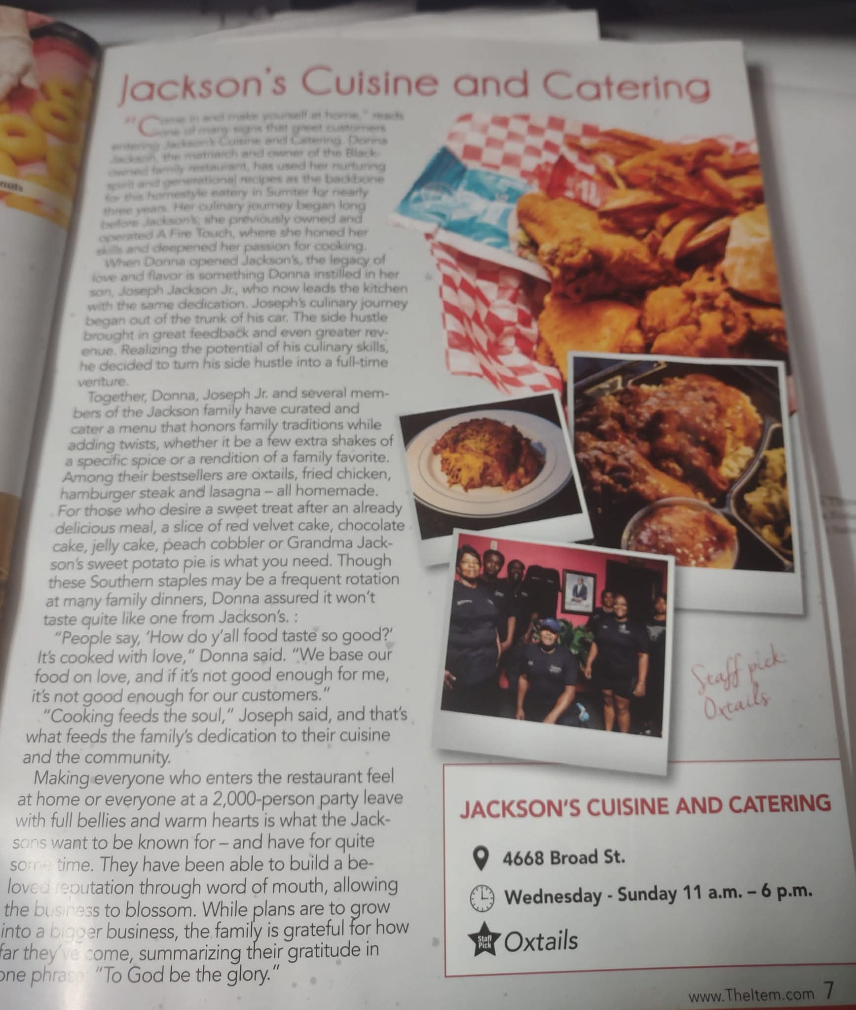 - Facebook: Jackson’s Cuisine and Catering
