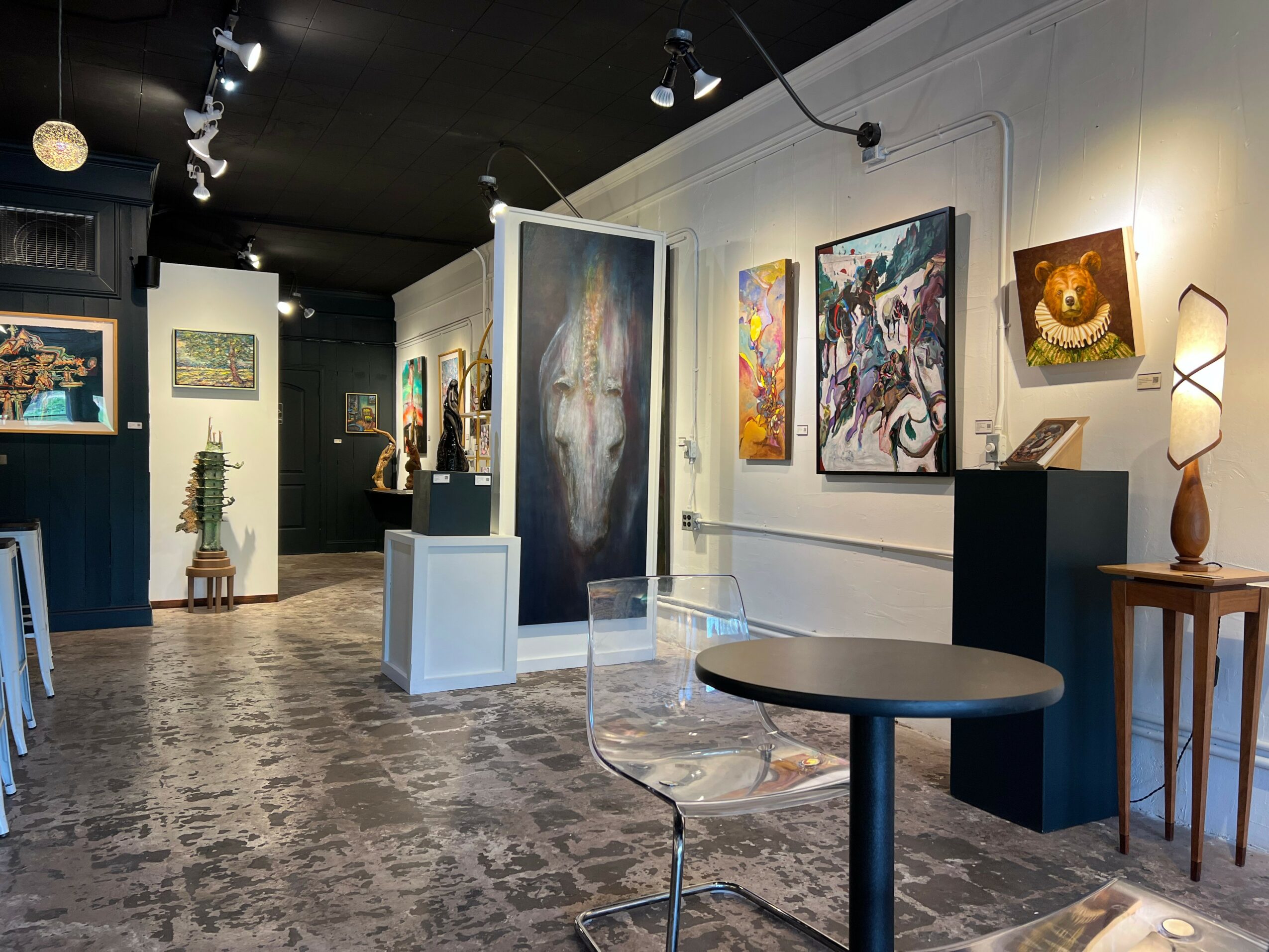 We are a fine art gallery located in the Village of West Greenville. We specialize in providing collectors with statement pieces from local, national and international artists. We have rotating exhibitions every two months, and frequently refresh our gallery with works from our eleven represented artists. We carry an impressive amount of figurative work, as well as unconventional abstract works that emphasize the interesting processes. Most of our work has a narrative quality as well and we love talking about the works to our collectors and visitors of the gallery.