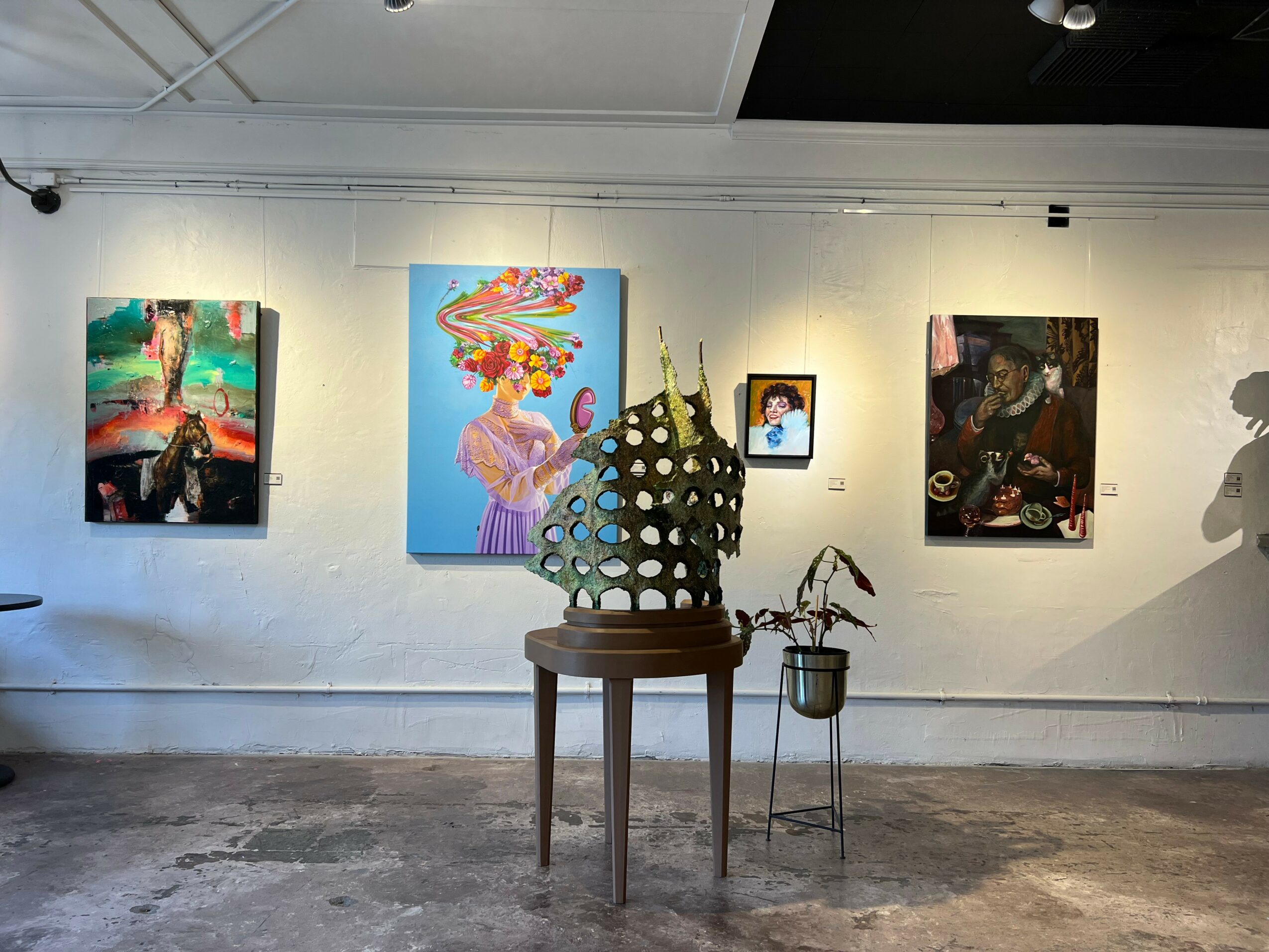 906 Art gallery opened October of 2023 in Greer SC. We. began with two studio artists, Griffin and Nicholas, and local writer Leah. Leah was spearheading the creative task of directing the gallery, and we were all hard at work behind the scenes. The initial drive of the gallery was to display the works of Griffin and Nicholas, but soon expanded as we began to work with artists that we still represent today. Nicholas made the move from partner to represented artist, and Griffin and I headed the gallery off on our own and moved to Greenville. The vision of statement artwork coming from far and wide, nationally and internationally, resonated with artists and collectors alike. We’ve been very lucky to meet incredible people that have participated in creating and supporting this pocket of creativity in the Upstate.