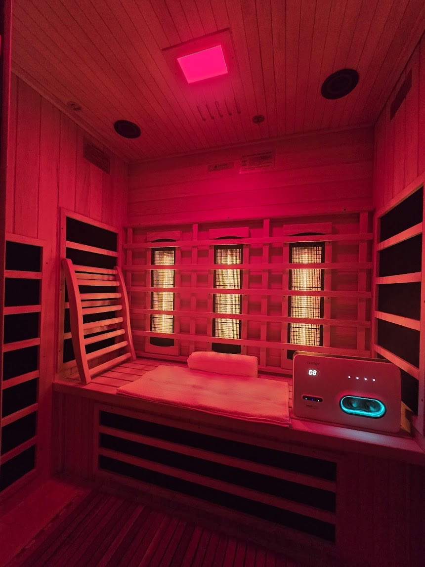 Every element of Renu reflects the therapies that supported my own healing: full-spectrum infrared saunas for cellular detox and circulation, and PlatinumLED red light beds for skin rejuvenation, muscle recovery, and mood support.