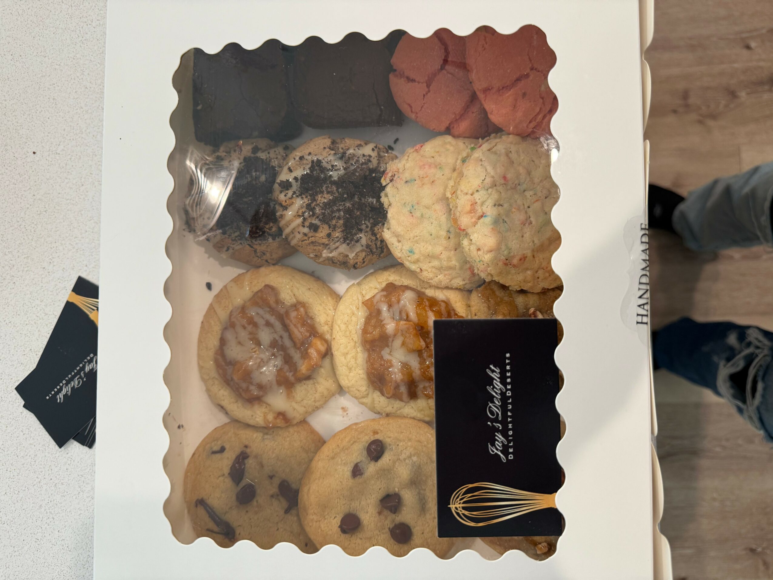 love engaging with my customers and making sure every bite is as delicious as it should be. I’m especially known for my banana pudding and cookies—favorites like peach cobbler cookies and s’mores cookies are always a hit. When it comes to cupcakes, the strawberry and my red velvet stuffed Oreo are customer favorites.