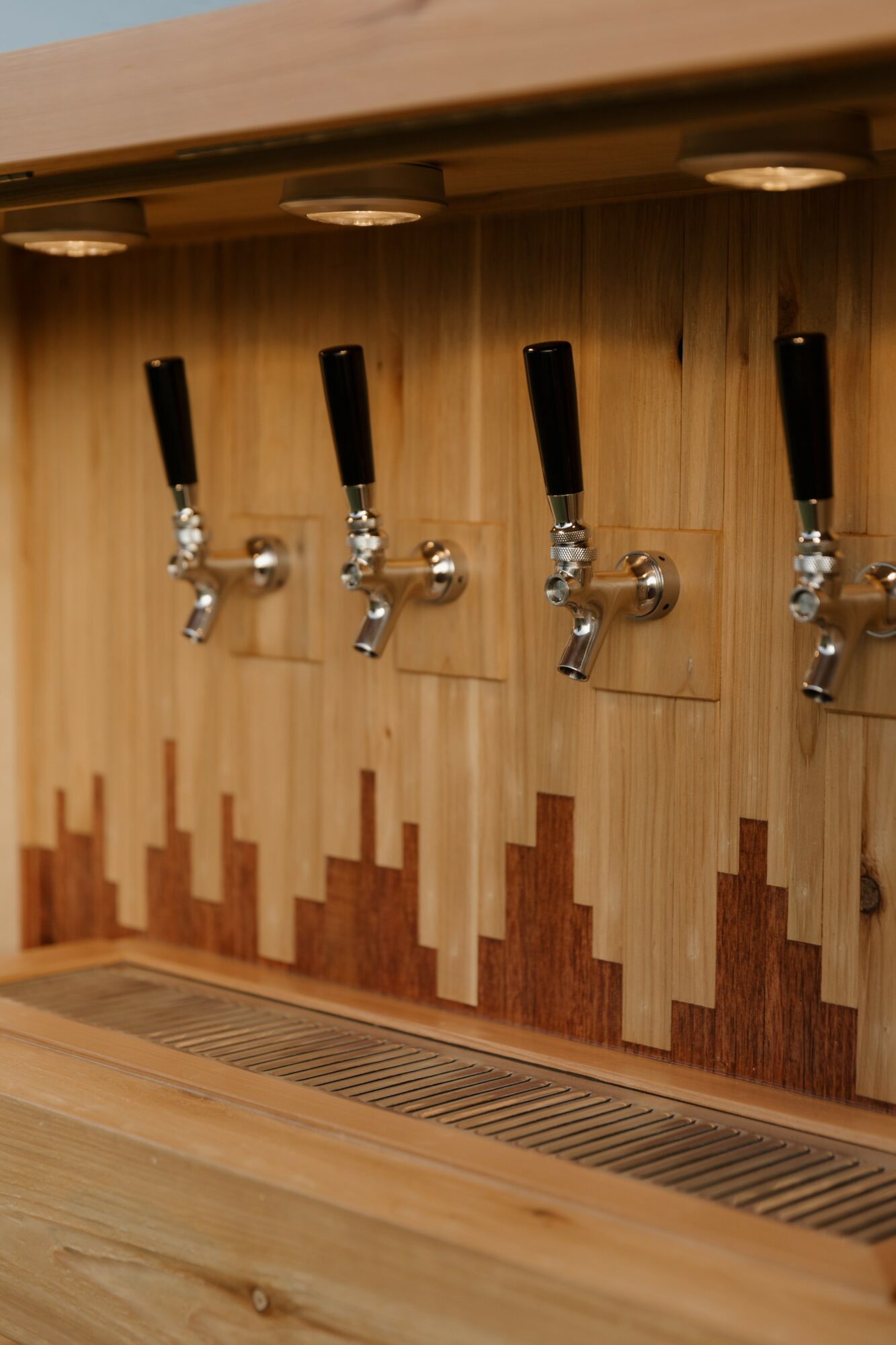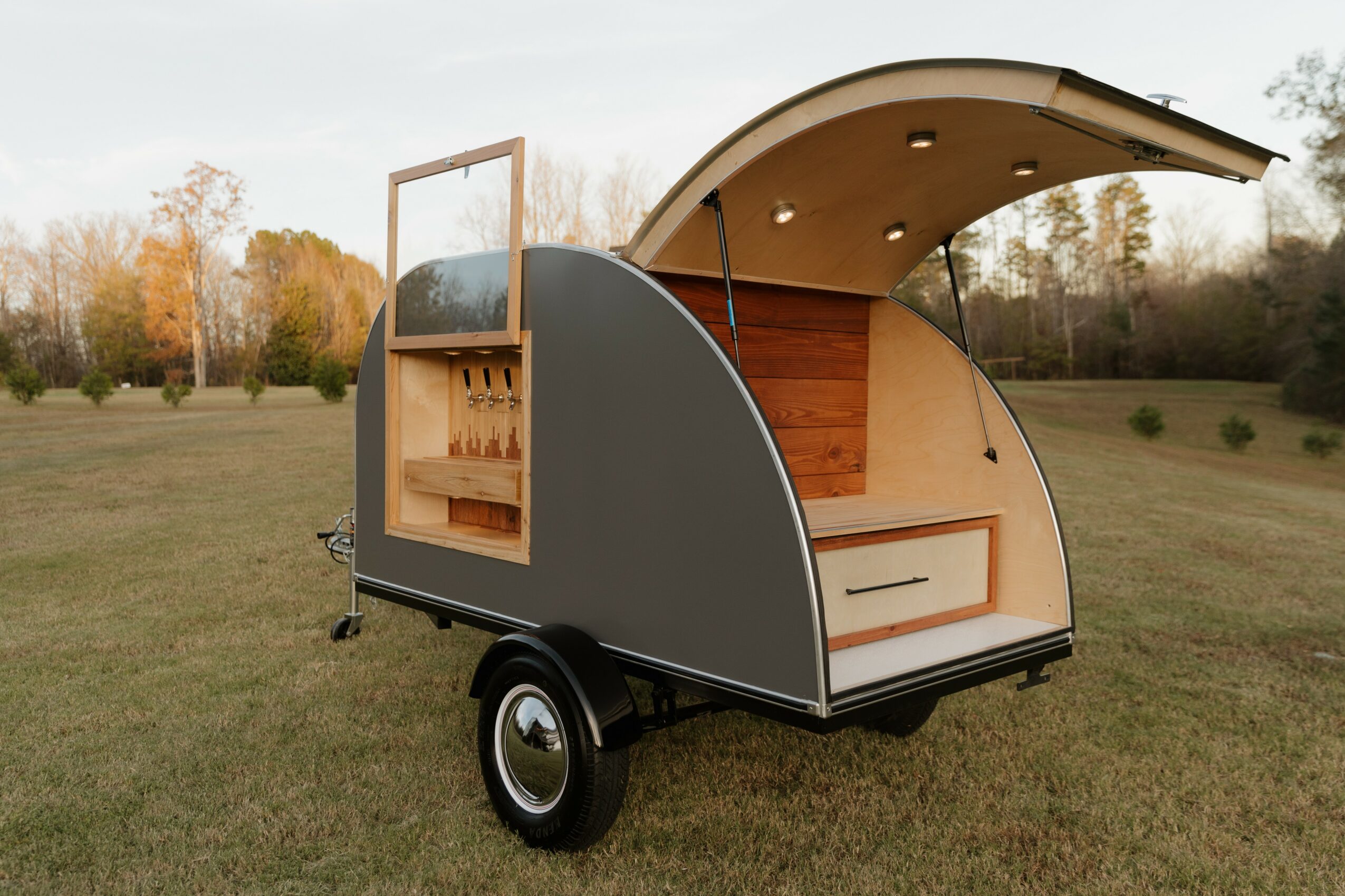 Daniel had always worked in construction, but his journey into trailer building started when he got into tiny house construction in Washington. That eventually led to a small side project with a friend—building a tiny camper in a teardrop shape. What started as a fun idea quickly turned into something bigger when his TikTok account (@everyday.dan) gained attention, bringing in requests for custom builds. That’s when he created the first Beerdrop, a mobile bar trailer with taps, which can now regularly be seen at the Travelers Rest Farmers Market. One build led to another, and before he knew it, he was running a full-time business.