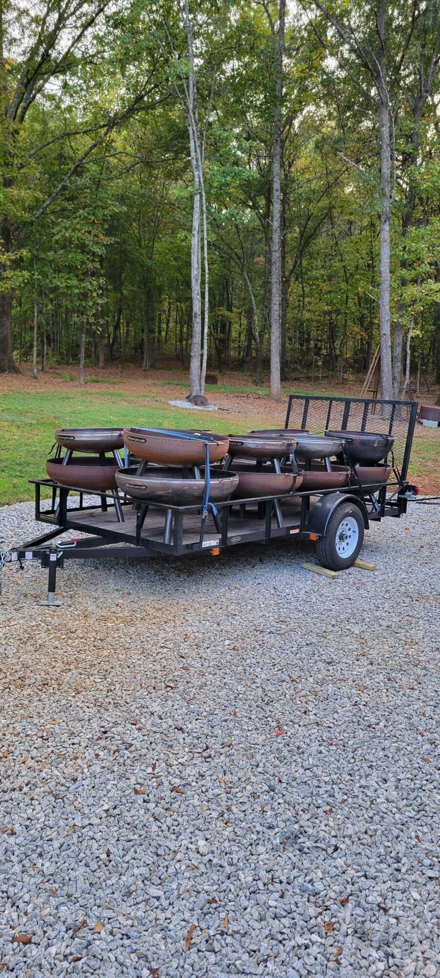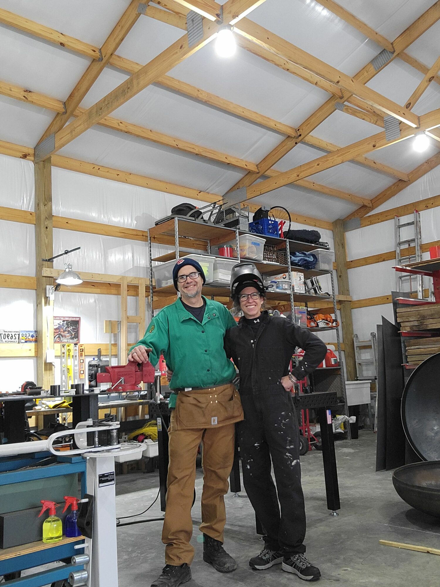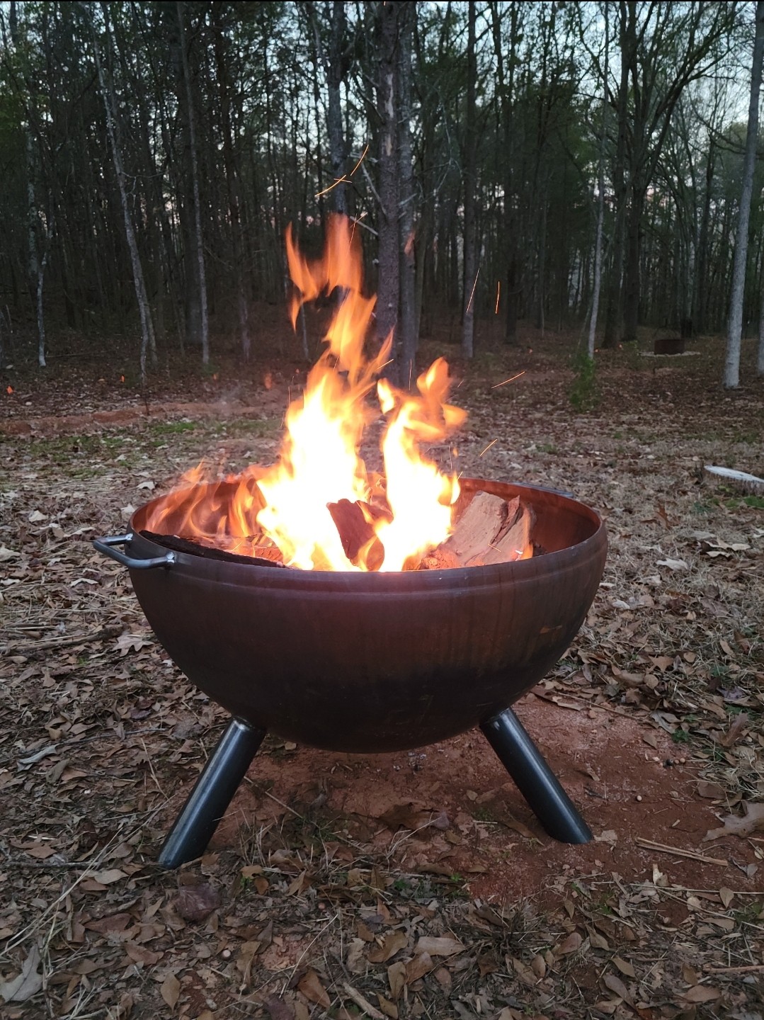 FIREPIT Nights started in 2022 as a firepit rental service for events in the Upstate. We were bringing our firepits out to venues in the area to help celebrate corporate events, weddings, private parties, music events, and just about anything else where a warm fire would enhance the vibe. Every time we attended an event, we would get asked, “Do you sell these?” We have even had someone buy the firepit we used that night to take home with them! And so, we started fabrication and sales. While the majority of our business comes from sales, we do still run our rental program, and it is one of the most enjoyable parts of our business. Matt has been in manufacturing his entire career, and still works with GE Vernova here in Greenville. My background is in art and fitness, and so our skills meld very well for what we do. FIREPIT Nights has become my full time job, and I am loving every aspect of it! Our firepits are made from 3/16″ – 1/4″ low carbon steel, and will NEVER rust through. We fabricate sizes ranging from 24″ to 48″ in diameter. We also have several accessories such as snuffer lids, grilling grates, pokers, roasting sticks, and firewood racks. With a comprehensive fab shop here on our property in Travelers Rest, we are also able to do custom metal works, such as signage, gates (Have you been to Juniper? That’s ours!), railings, bear-proof trash bins, table legs, shelving, fireplace mantels, and more! Our shop is open by appointment. Reach out to schedule a time to visit!