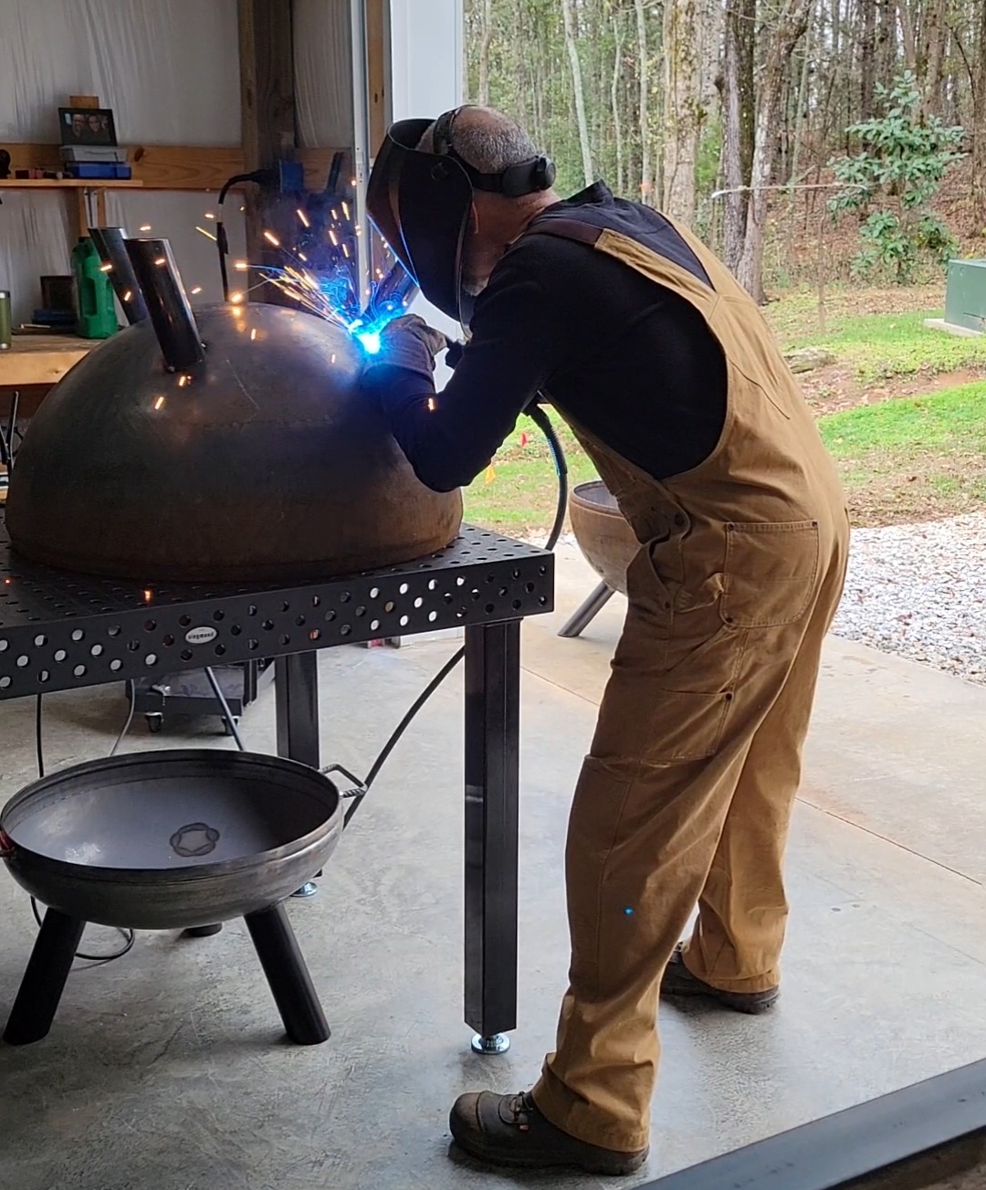 While Matt has been welding for years, it was a new skill for me. In addition to his guidance, we both spent time out at Greenville Technical College to perfect our skills under the tutelage of Ron Lowery, who is one of their top instructors. In addition to the technical aspects of materials properties, machine settings and processes, there is also definitely a learning curve in terms of the physical application of welding steel pieces together. The most important thing to ensure are strong welds, but it also has to look good.