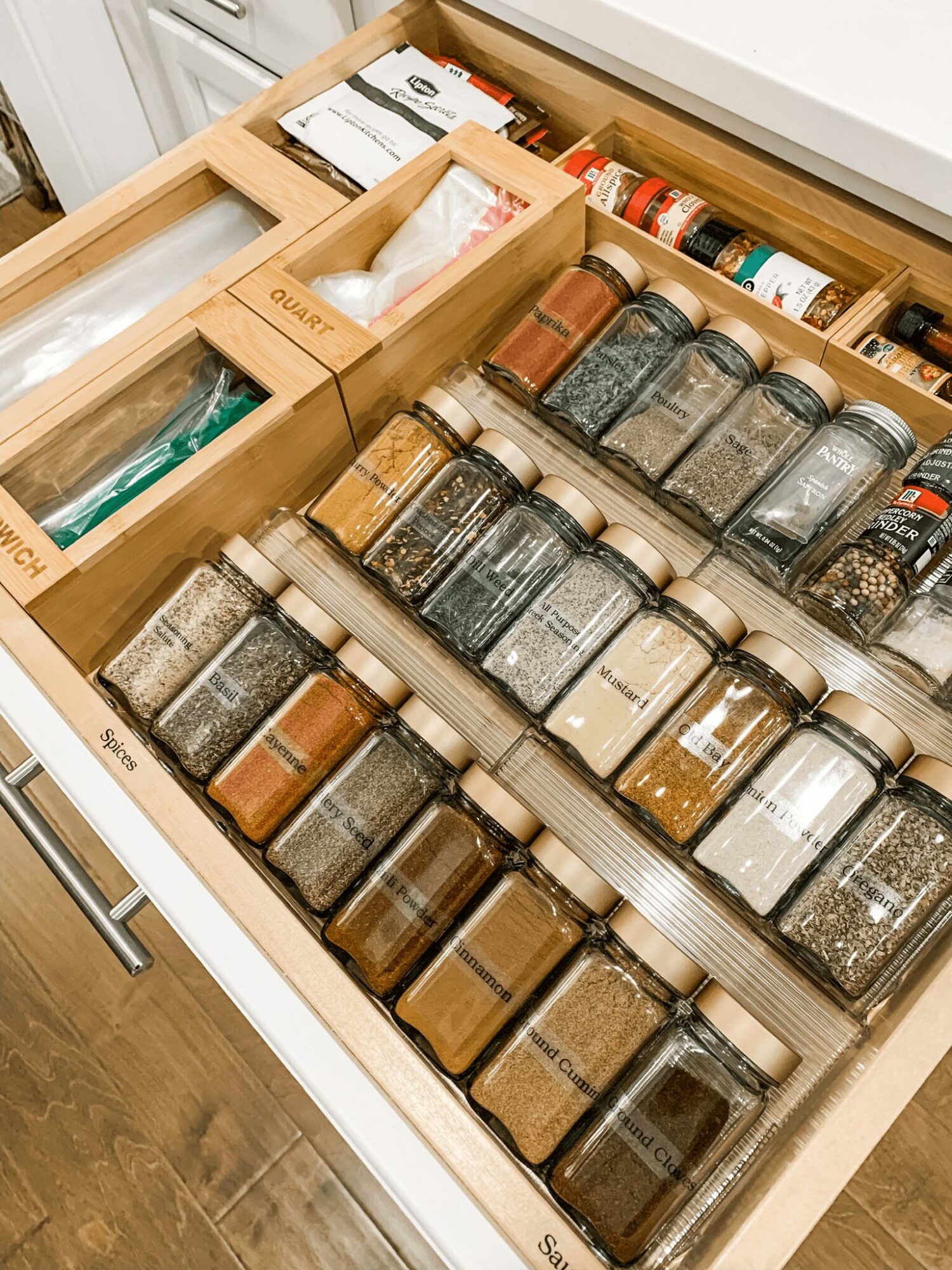 We consult before our organization and survey the spaces that we will be working on. We measure, decide which bins will go where (lazy susans, bins, drawer organizers, etc.) and then assist our clients in purchasing their necessary products. On the day of organizing we implement the systems we designed and then fill the products with the clients’ items!