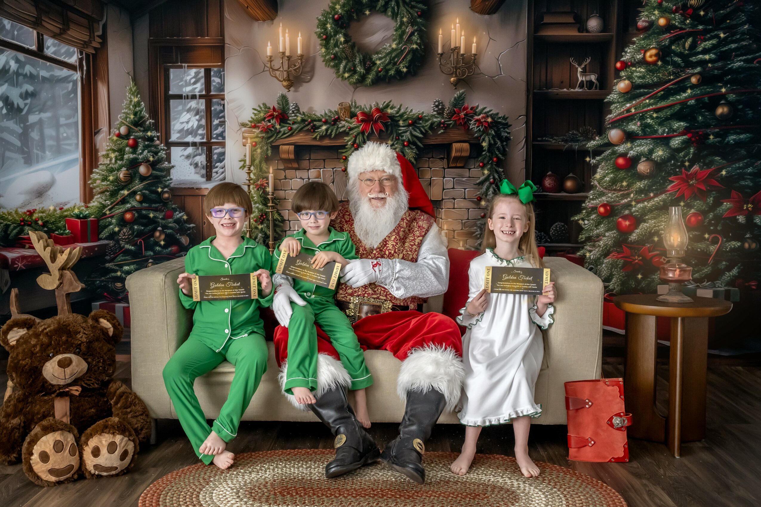 Demands for different types of photo shoots will always be different depending on several factors. Some years I see an uptick in weddings and some years see a baby boom. Beach Portraits have always been a staple since we live in a vacation destination. In recent years, I have become most known for our Santa portraits. We photograph Santa on the beach in late Summer before the kids go back to school. These are light-hearted and fun, since the weather is warm and the kids (with Santa) are showing off their best and trendiest beach attire. In November, Caledonia (Golf Club) Santa is the most picturesque, and most requested, with live oak moss trees lined on a beautiful driveway. Then, we have The Santa Experience in the studio. This session is truly special where Santa and the kiddos spend 30-45 mins together, tell stories, share Christmas wish lists and eat cookies together. There is something so special about seeing the magic of Christmas through the eyes of a child. I love being able to help share that experience. I have been told many times that we’ve helped the parents “buy another year” of Christmas (believing), which makes me feel proud of what we do.