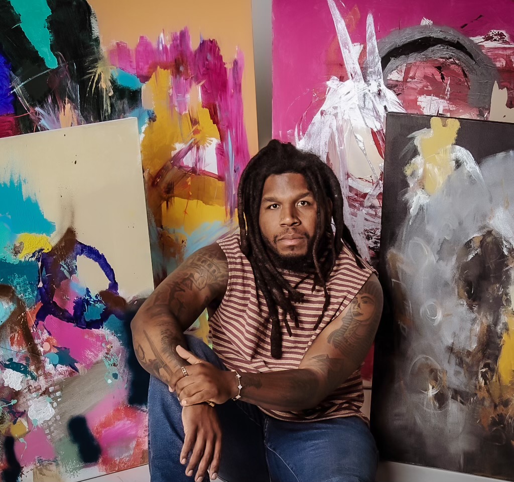 Well I started at 29 when I realized my traumas, pain, negative relationships, and insecurities have festered over the years. I finally erupted and wanted to put my pain into a productive and constructive use. The life of a child no father in house, sexual molestation, growing up no lights and no water some days. It created an individual that wanted to be bigger than his past. One day i decided I wanted to paint so I went to dollar tree and bought canvas and paint to try it out then fell in love with it immediately. One canvas a day led to 3-5 a day mini pieces. So I continued painting and later started gain attention and notoriety for my works.
