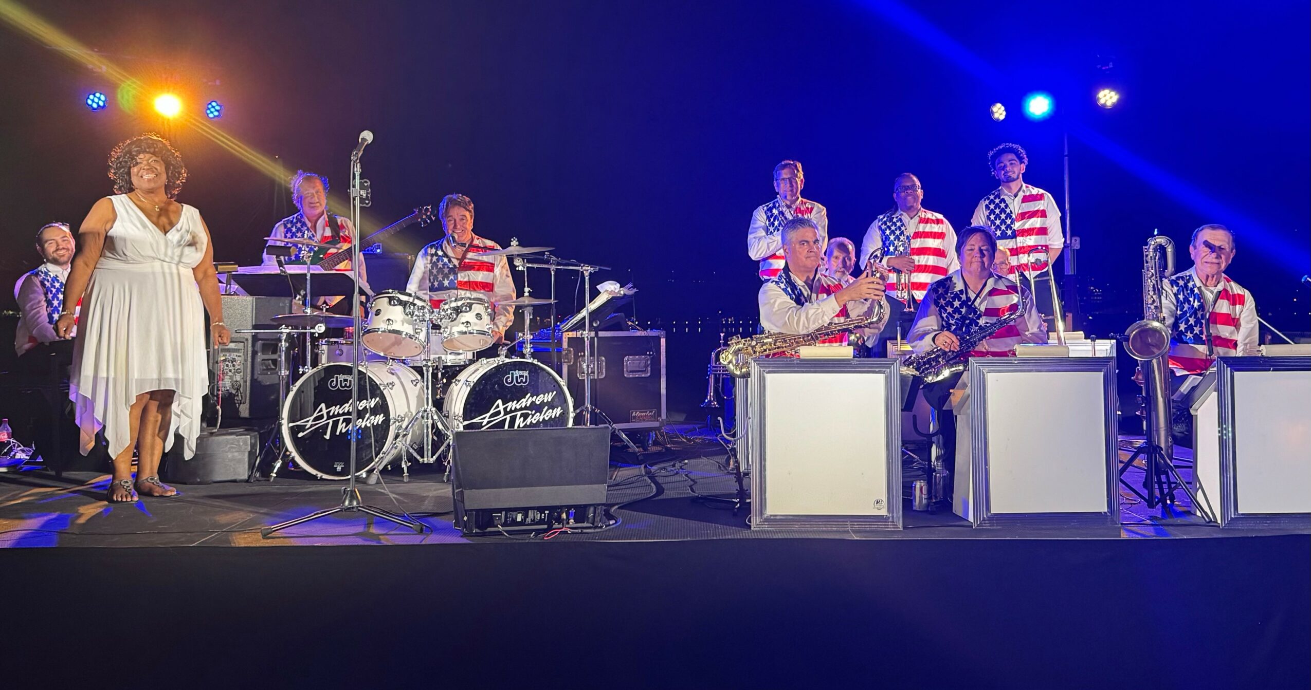 Andrew Thielen band leader of the Andrew Thielen Big Band was born in South Dakota and started playing drums at age seven. Mother and dad were both musicians and teachers. Went to college as an English major in Minnesota but entered the USMC officer course and became a 2d lieutenant upon graduation. My first duty assignment was at Camp Lejeune, North Carolina and I fell in love with the south. So I have never left.