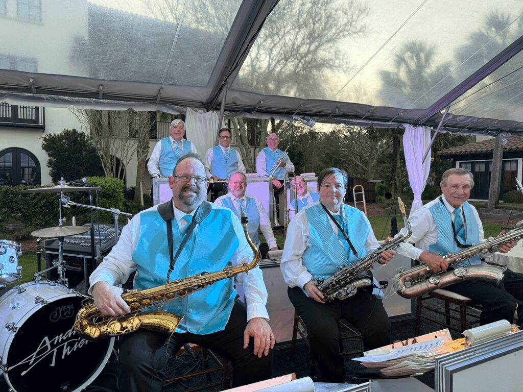 I started the big band in 1993 playing for the door in Myrtle Beach at Cowboys Nightlife, and the shag and beach clubs of Ducks, Fat Harolds and Suspenders. As the band got better we became recognized state wide playing for Charleston Place corporate events the Carolina Cup, debutante balls and many weddings. Then we became nationally known and played at the House of Blues and Planet Hollywood. We played for Inaugural Balls in Maryland for Governor Hogan and in South Carolina for Governor McMaster.