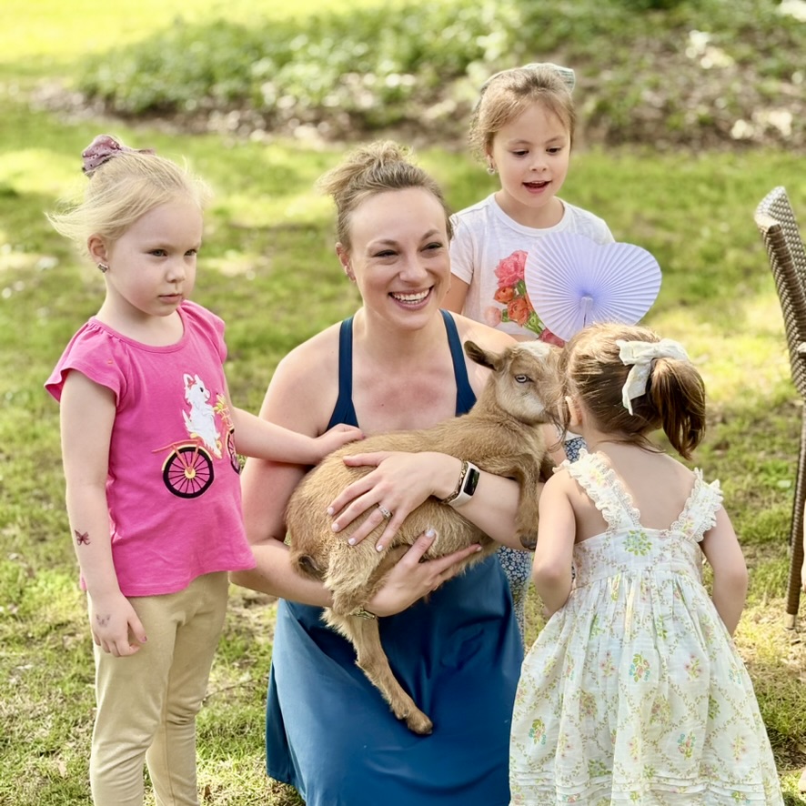 As The Doting Goat continued to grow, life began to move quickly. In May of 2024, my now-husband, Billy, and I got engaged, and I threw myself into wedding planning. The Doting Goat endeavors were mostly put to the side, well, except for my dream of wanting baby wedding goats. So, in January of 2025, we welcomed ten new kids into the world. Do not underestimate goats. I truly thought we would have no more than six.