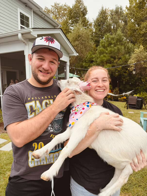 In May of 2025, Billy and I were married, with our two “ring goats,” Meredith and Bucky, in attendance. As we began a new chapter of our lives together, a new chapter for The Doting Goat was also emerging. With the wedding behind us, more space to grow, and a herd we intentionally downsized to our “core seven,” we finally had the time and capacity to begin building the “goat business” I had been talking about for so long.