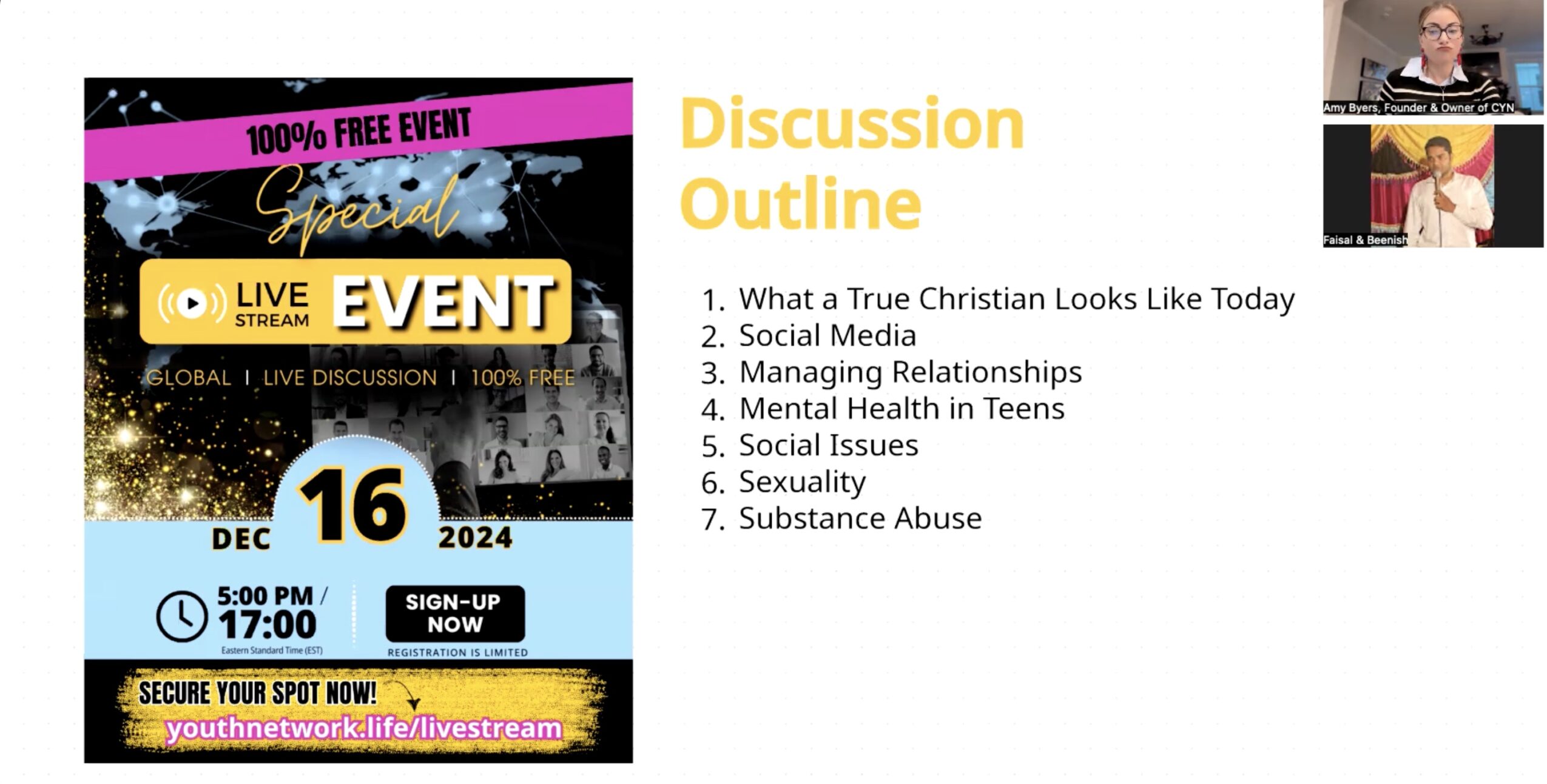 The Christian Youth Network (CYN) also offers individual and personalized services, including motivational speaking, youth mentorship, parental support sessions, live chats, online network, and devotionals.