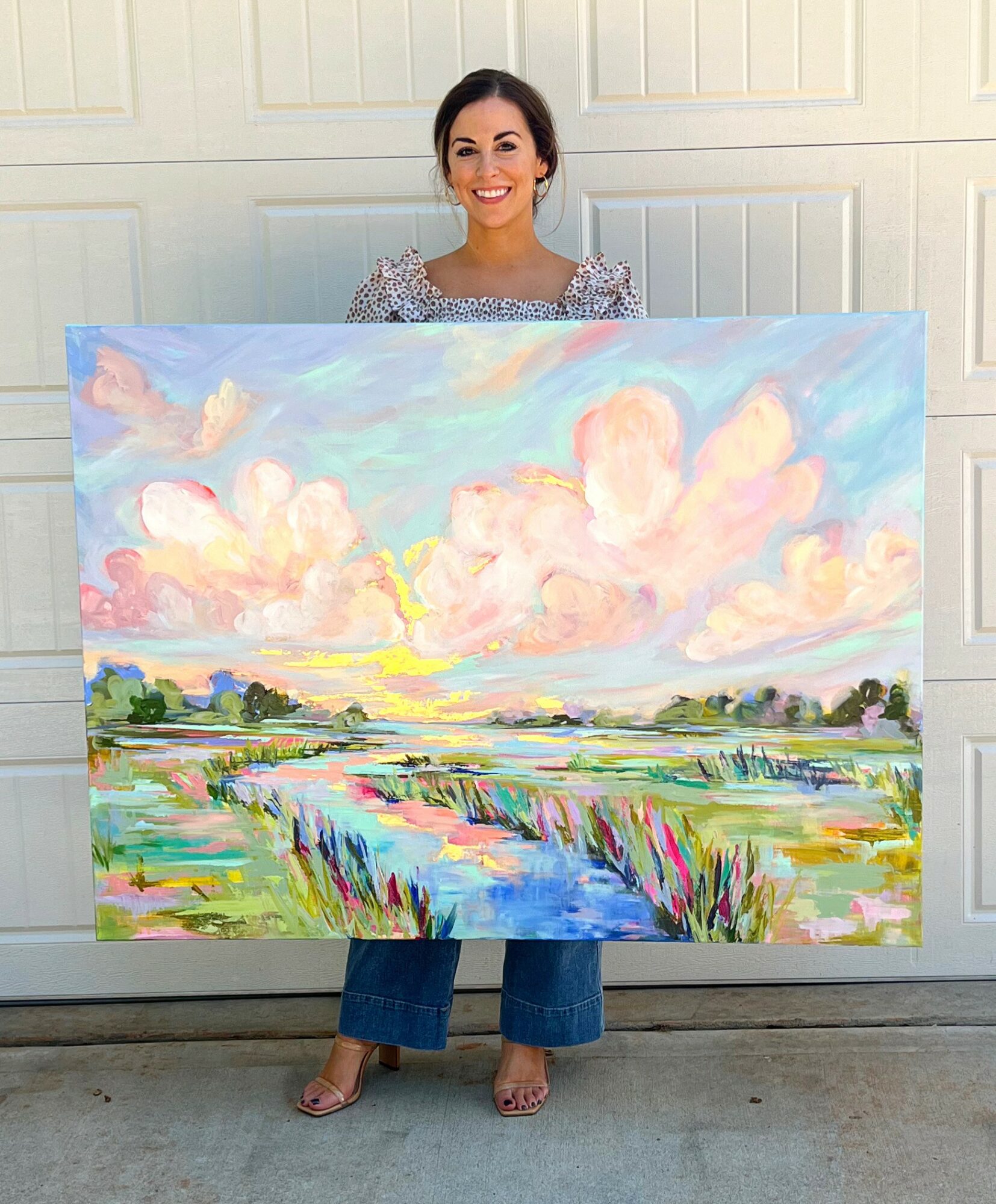 I always say that I’m an accidental artist. Although I was a highly creative kid, I never had formal art training. I didn’t know I could even paint until after college. After graduating from the University of Tennessee, I worked in marketing for about twelve years. During that time, I painted as a hobbyist and started to get commission requests from my friends and family. When I had my first daughter in 2017, I left the corporate world to stay home and work part-time with a marketing firm while painting part-time as well. In the summer of 2020, I made the decision to take my art career full-time, and it has been a beautiful whirlwind! I am grateful to be at home raising my daughters while pursuing my accidental artist dream.