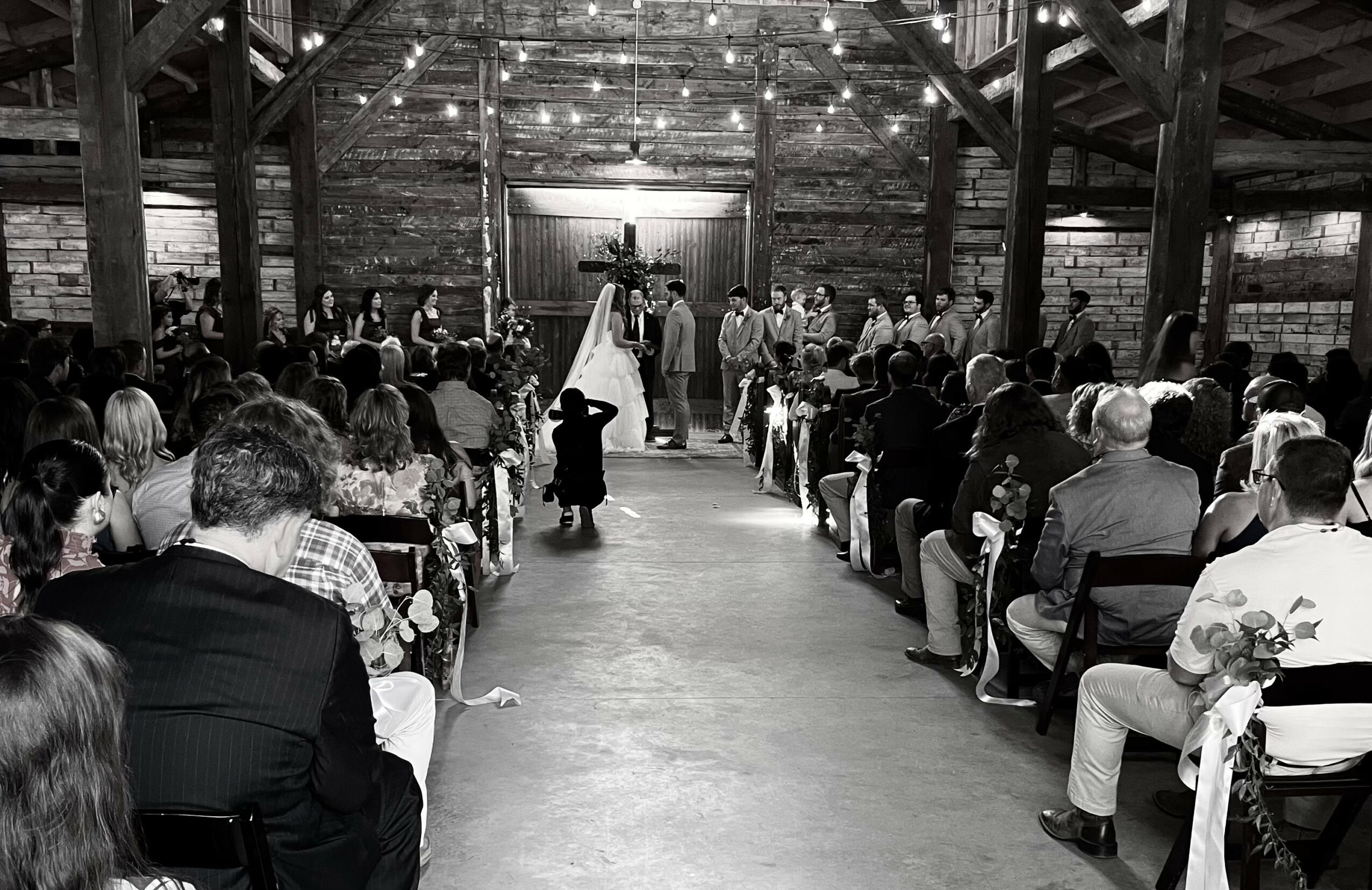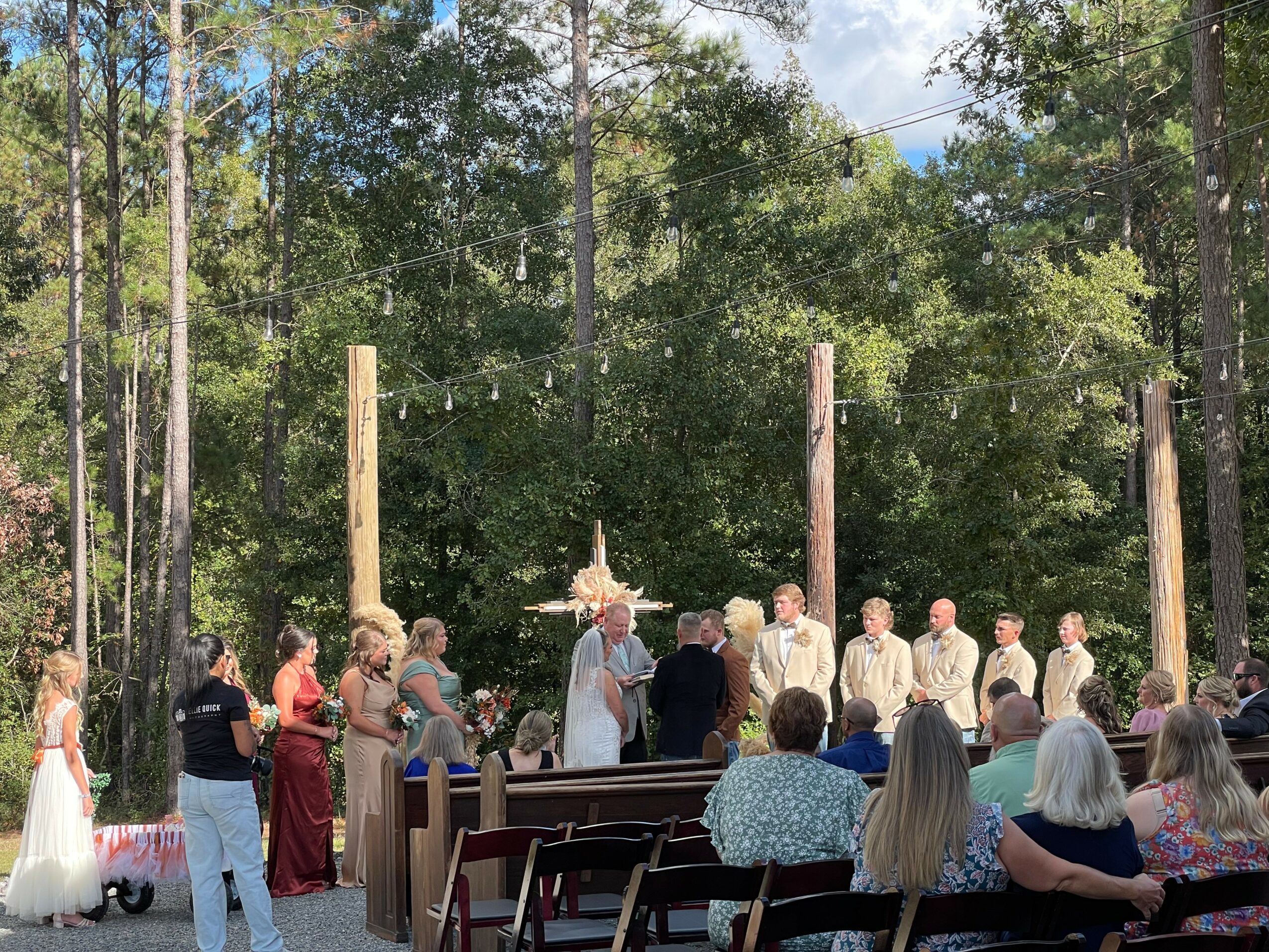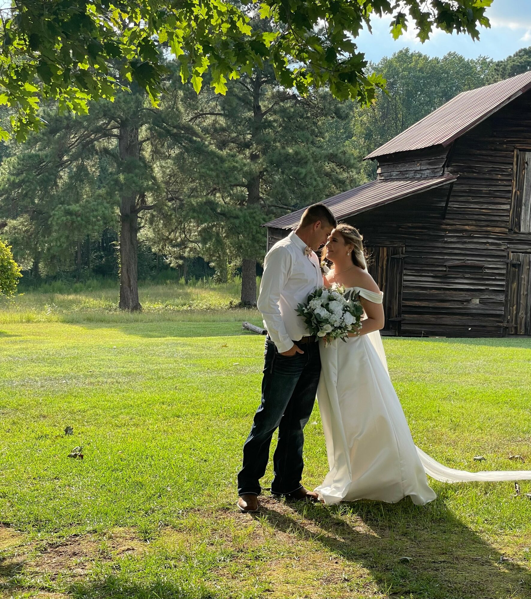 My husband’s family has lived on the property for over a hundred years. The old home place has been a beacon of hope, love and joy for the family for generations. We’ve enjoyed family gatherings in the old hay barn for years. When my son and his then fiancé were planning their wedding, they received some unexpected news. Her grandmother had been diagnosed with dementia. They wanted to move up their wedding date a whole year! We had the land and the old barn could serve as a place for the reception. We immediately got to work clearing an area for the ceremony. While working on their ceremony spot, we received our own bad news. My husband’s mother was ill with cancer and dementia. That was a very frustrating time in our lives because we couldn’t fix her. We struggled with our new normal. We worked our regular jobs, took care of her and in our spare time we poured what we had left into the ceremony spot. It was therapeutic to see the fruits of our labor. The wedding came. It was beautiful! The photographer was amazing! My daughter-in-law’s grandmother was able to attend. Unfortunately, my mother-in-law was not. The photos spurred curiosity and two other brides asked if they could get married at our place. We agreed. After three weddings we decided that we needed a rain contingency plan. The tents were too expensive and a trip hazard. I suggested a picnic shed, but my husband insisted on building a barn that looked like it had always been there. I joked and said, well if that’s the case we need to contact the guys from the show Barnwood Builders; the worst they can say is no! Well, I contacted them AND they replied within 24 hours! I was shocked! We believed it to be divine intervention! We exchanged emails and texts and traveled to West Virginia to discuss our build. In March of 2023 we laid the foundation and in April of 2023 the Barnwood Living, Antique Cabins and Barns team along with their film crew came to our little town to build the frame for our barn!