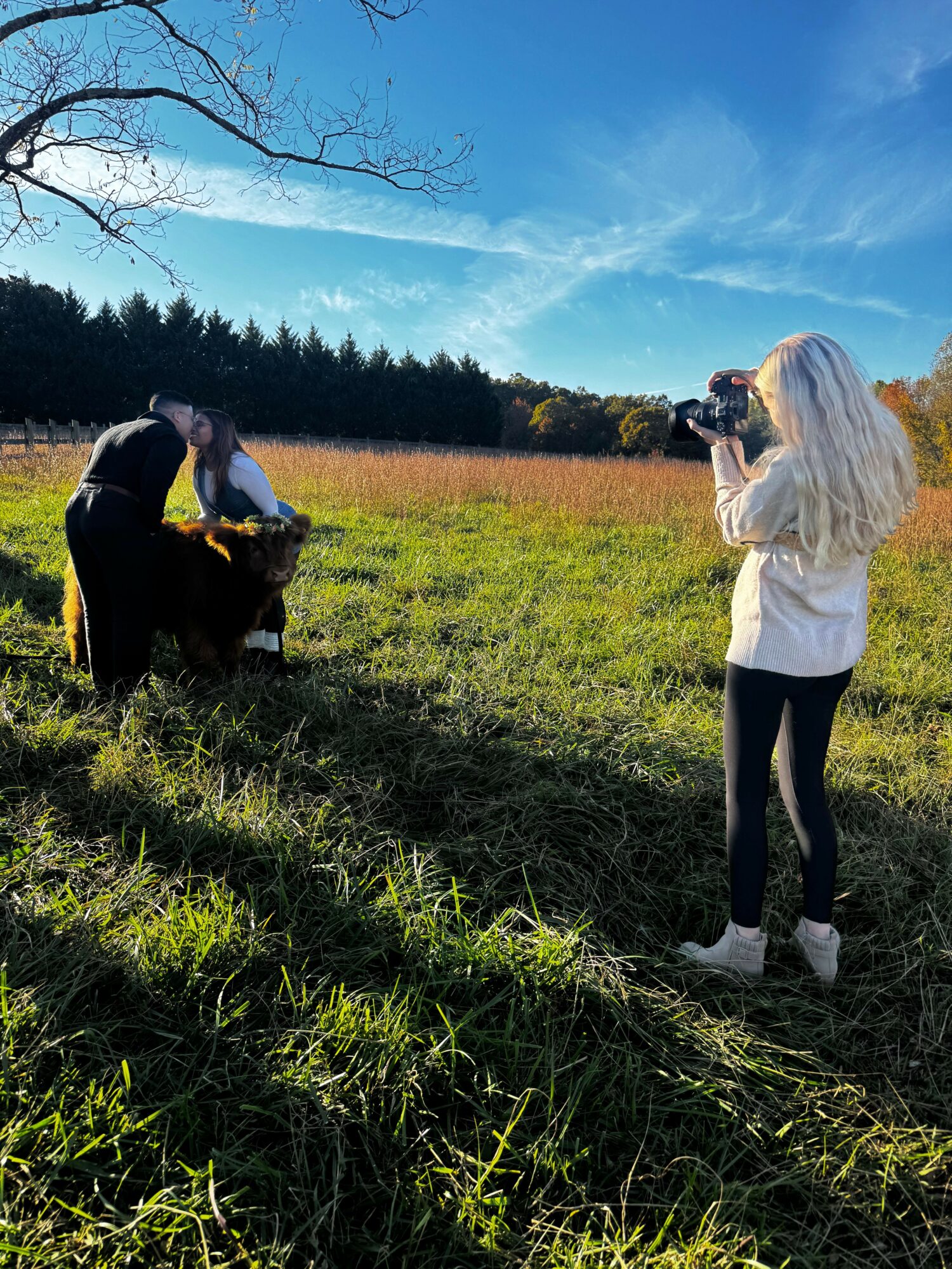 We are a sister team specializing in on the farm photography with Leo, the adorable highland cow. We are known for our very affordable photography that can include Leo or not. We’ve worked so hard to do things to set ourselves apart from others and strive to make fun and relaxed shoots for families, individuals, couples, and even pets. Our farm, that we do this on, is a 25 acre private family farm located in Landrum, SC. Leo has 4 cow siblings, a mini donkey sister, 2 turkeys siblings, and about 40 chicken brother and sisters that he roams the farm with! Located in a secluded part of the farm, is a family run, family operated Airbnb called the Retreat at Brecht Farm that Leo greets all the guests at as well! The farm is a perfect spot to come enjoy a fun, relaxed photo session at, with Leo on the farm.